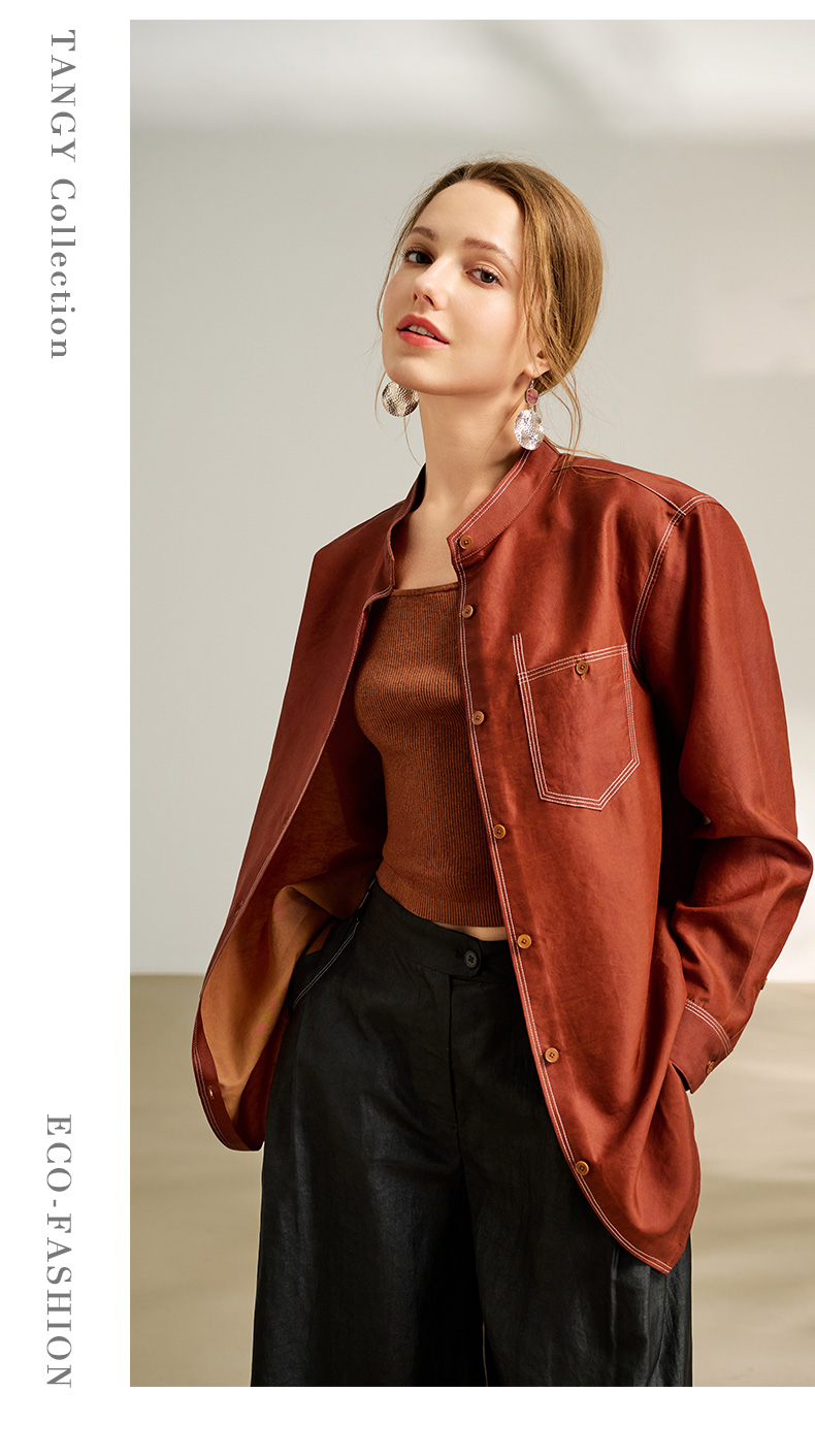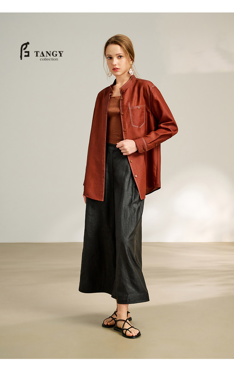 TANGYcollection天意2025秋季新品商场同款茛绸女衬衣L251002
