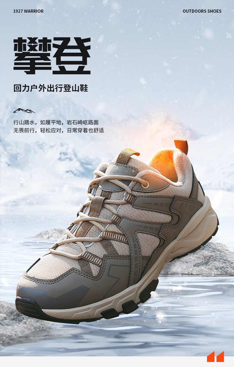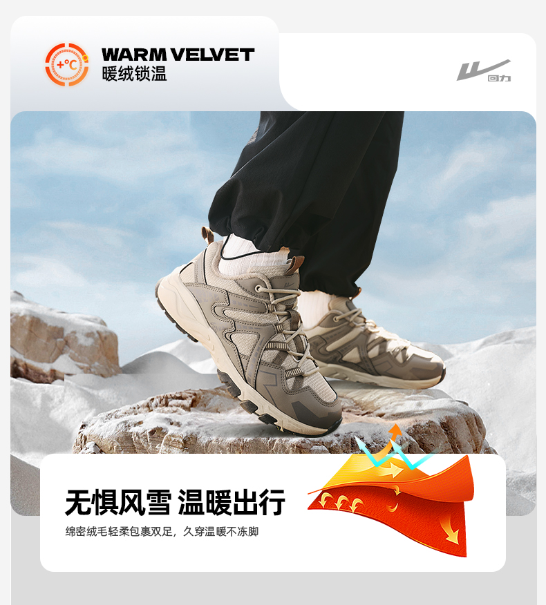 回力男鞋登山鞋秋冬季新款加绒保暖情侣户外徒步鞋子男防水运动鞋