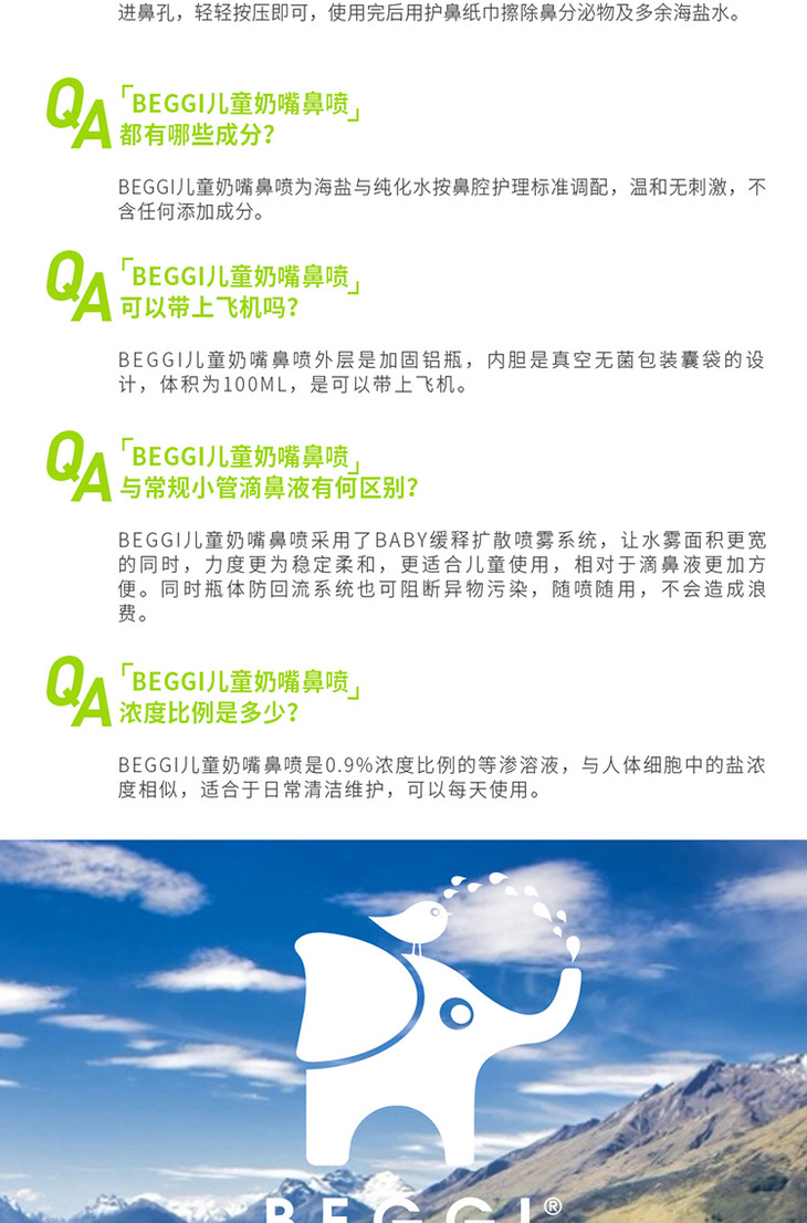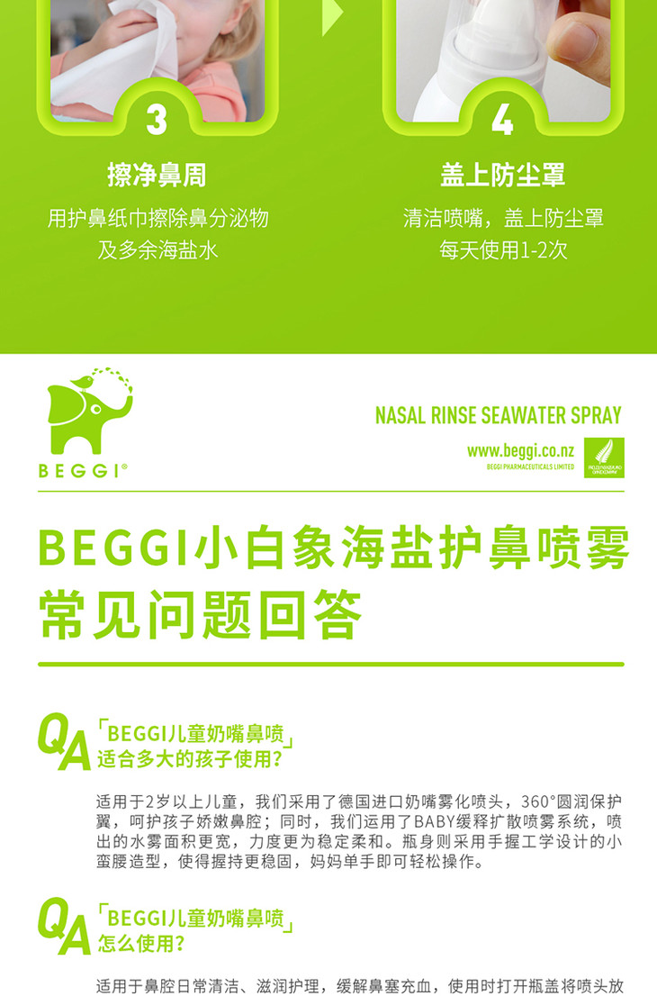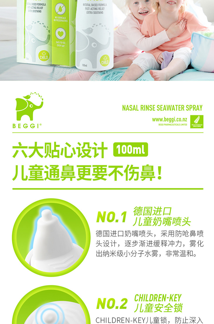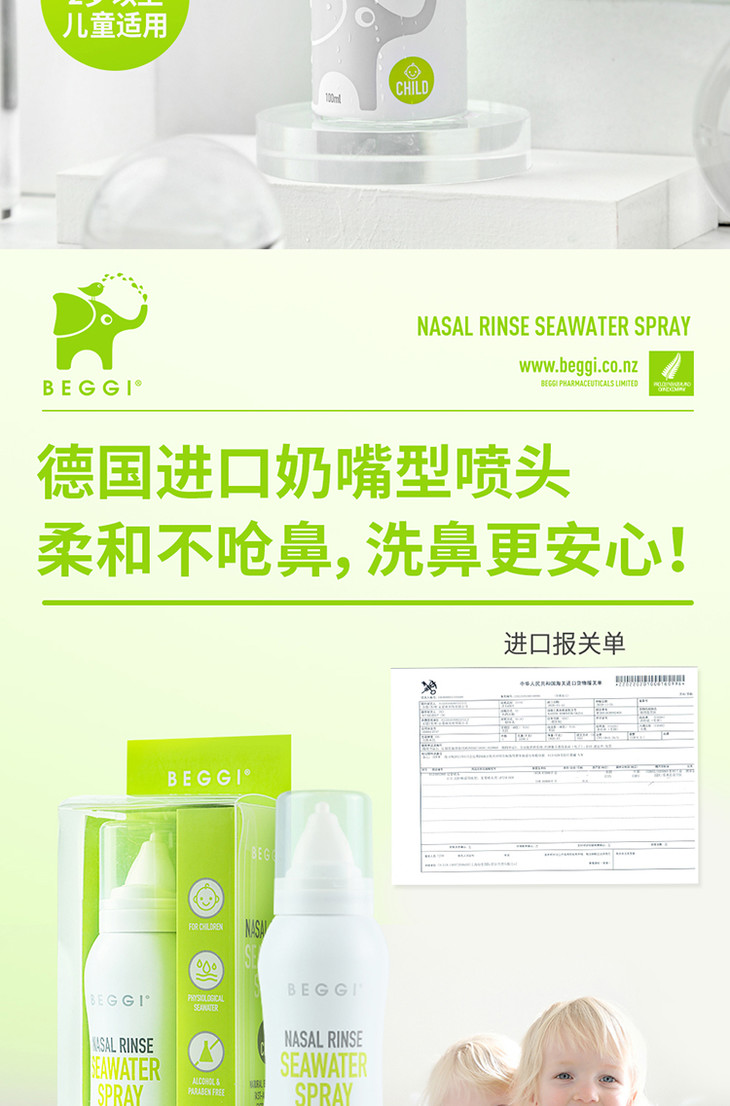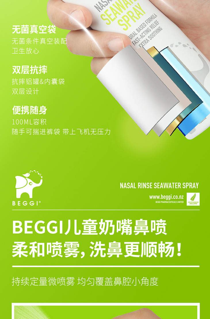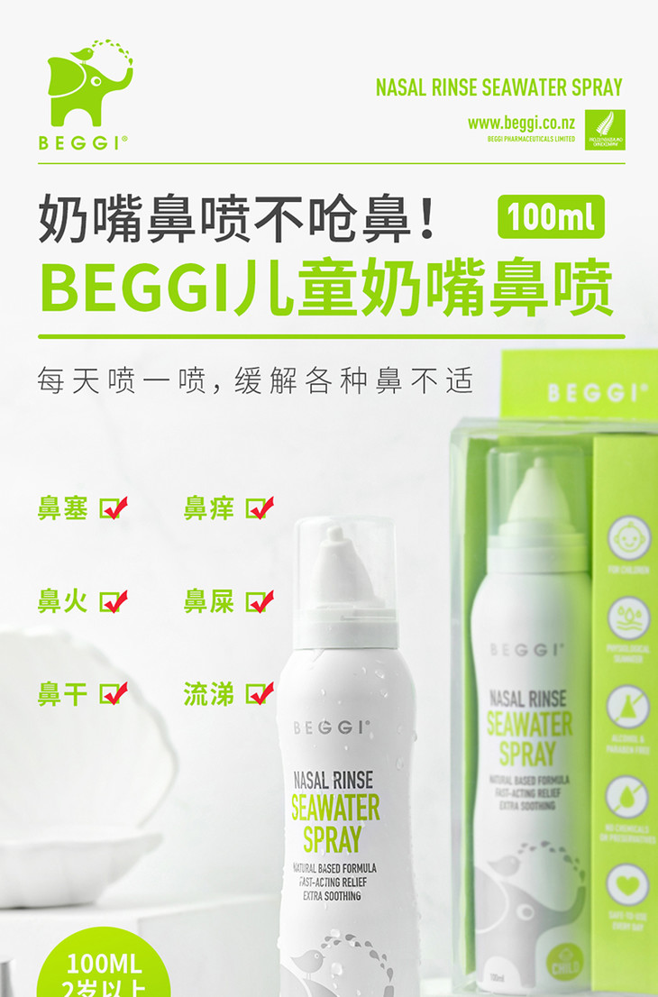 新西兰BEGGI/鼻精灵海盐护鼻喷雾儿童款100ml