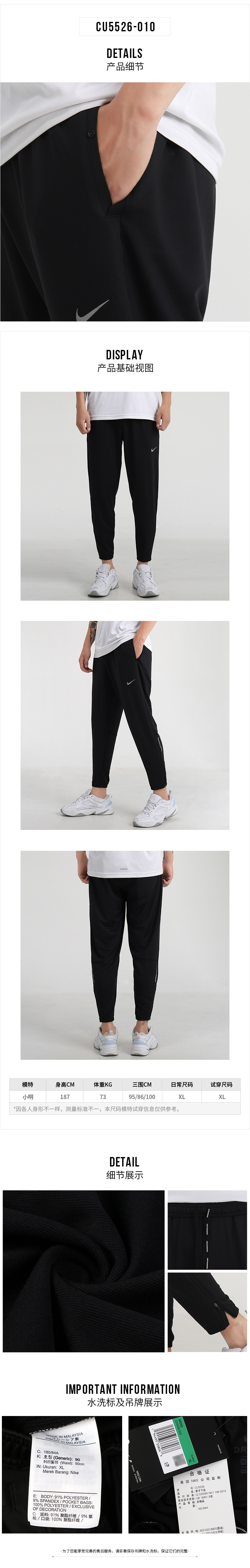NIKE耐克裤子男裤 2021秋冬季新款卫裤ins潮跑步运动裤宽松卫裤长裤CU5526-010