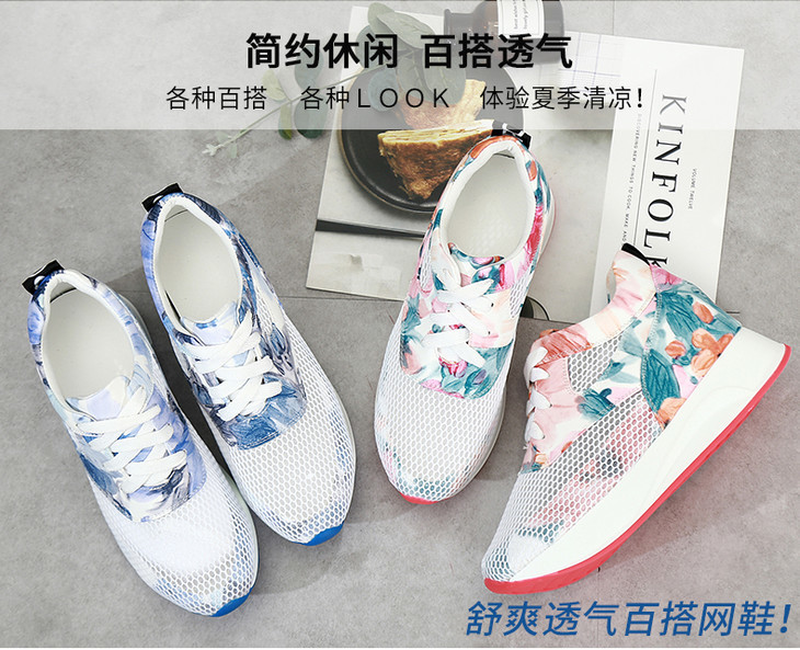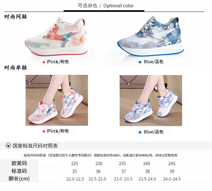 碎花休闲镂空,内增高厚底网纱运动鞋LMS158