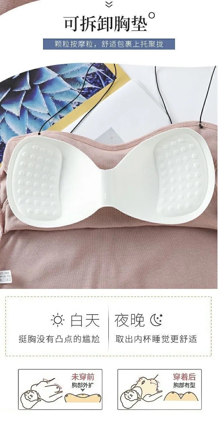 黛唯梵【舒适自在无钢圈】油画少女美背背心,抹胸带胸垫可拆,外搭内穿螺纹棉裹胸,性感小吊带 七夕情人节