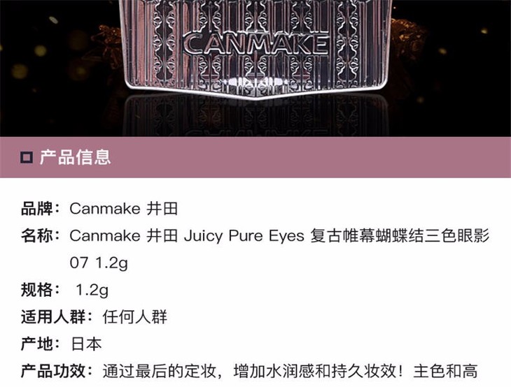 【保税仓】CANMAKE/井田 Juicy Pure Eyes 复古帷幕蝴蝶结三色眼影 #07 1.2g