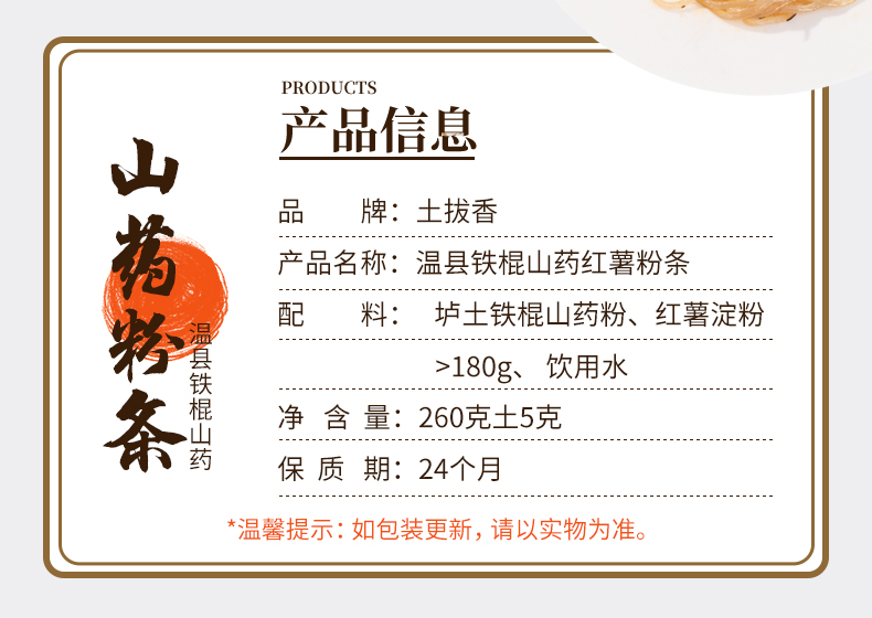 72小时发货【粉丝魅力】土拔香铁棍山药红薯粉条 Q弹软糯 260g/袋