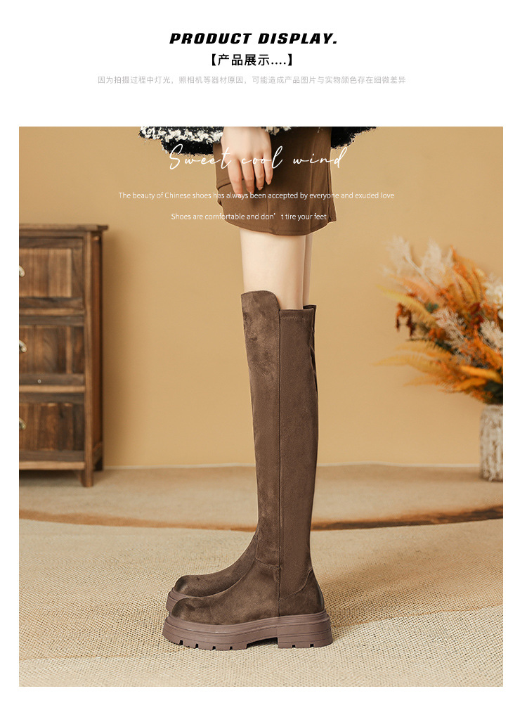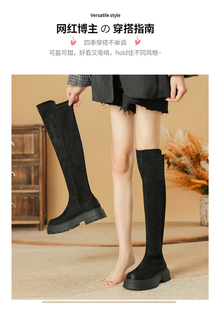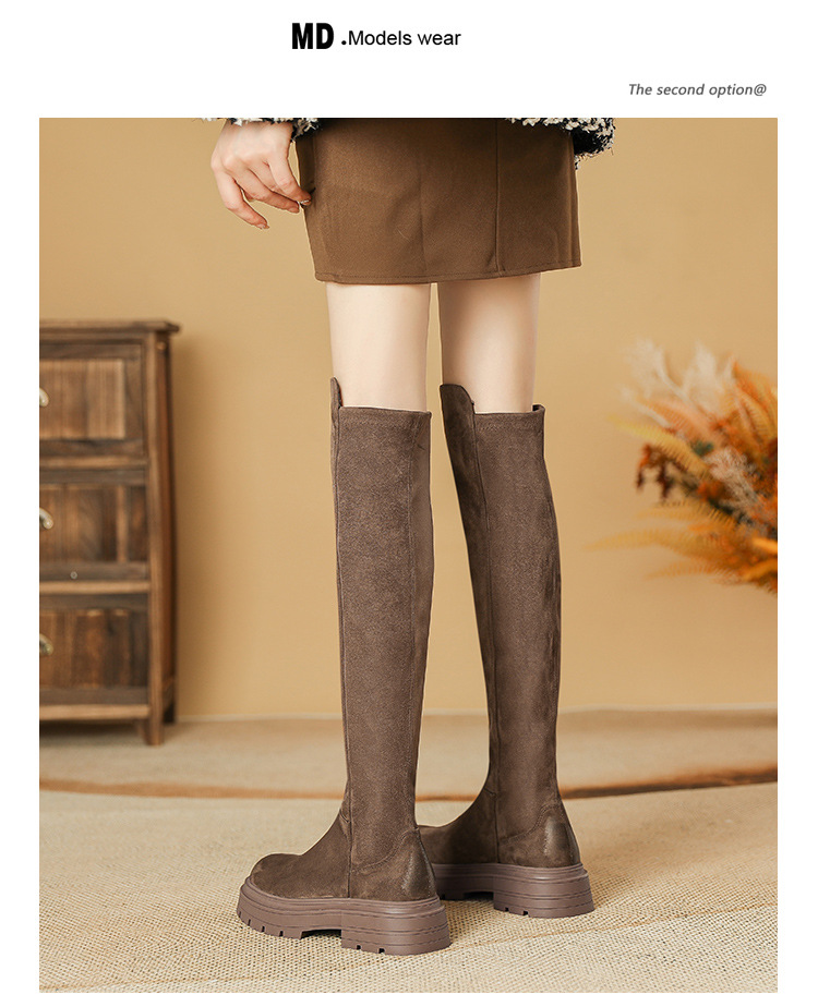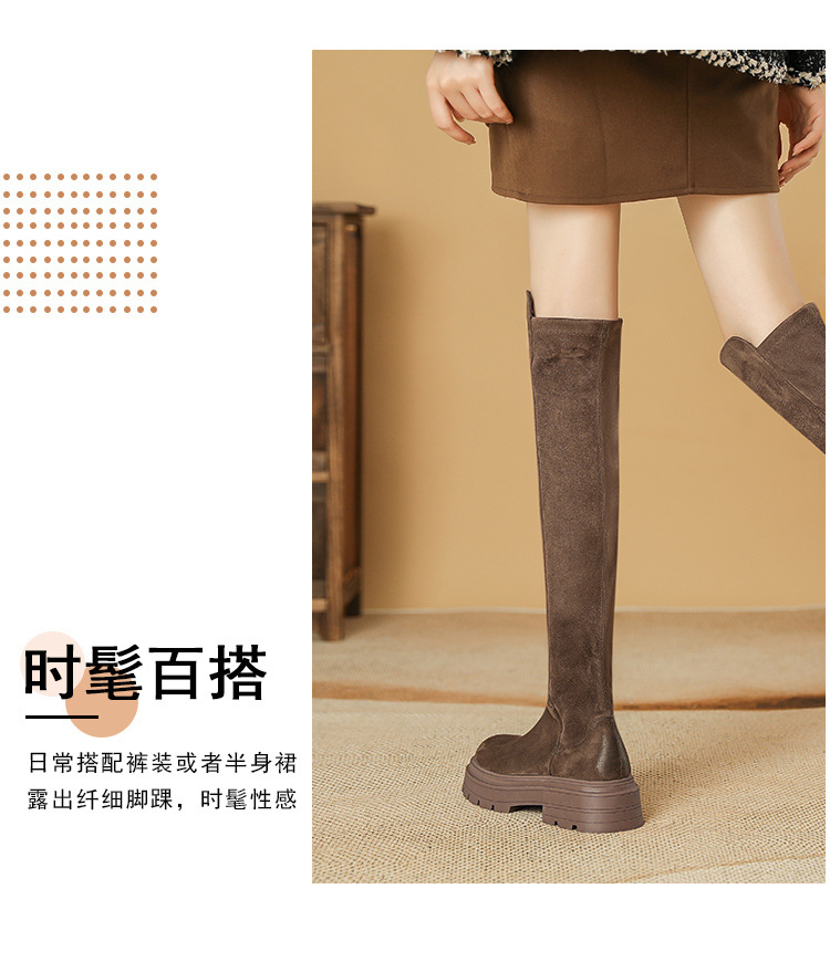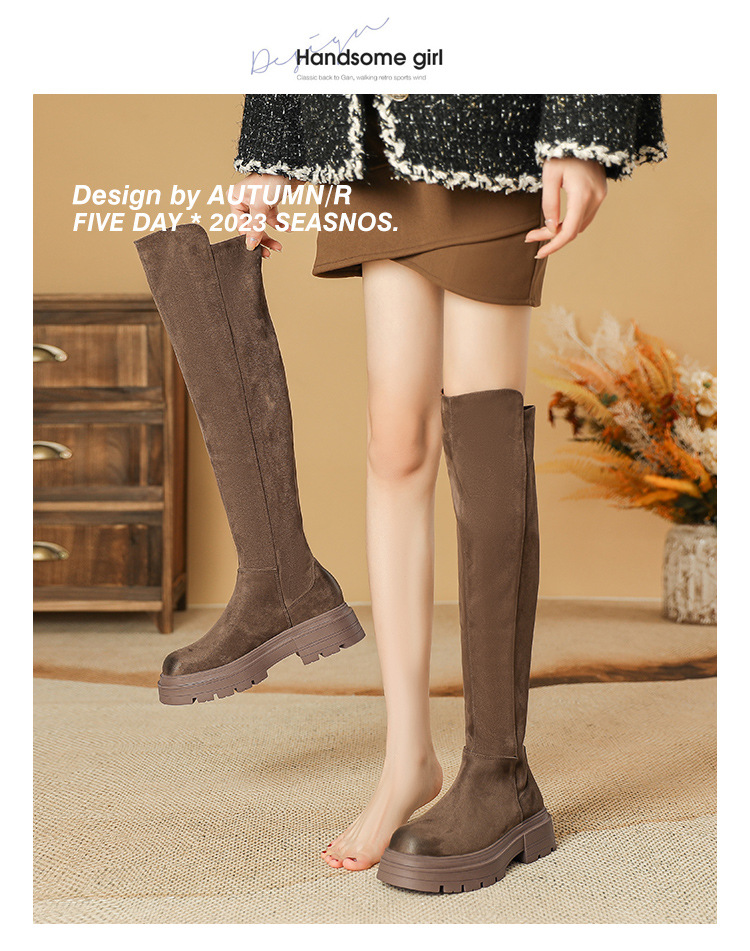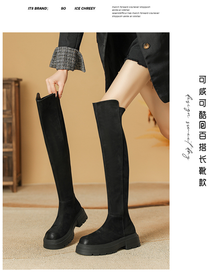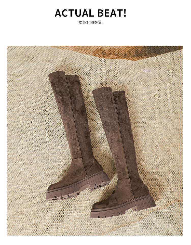 擦色复古过膝长筒靴小个子2023秋冬新款厚底瘦瘦靴弹力长靴女