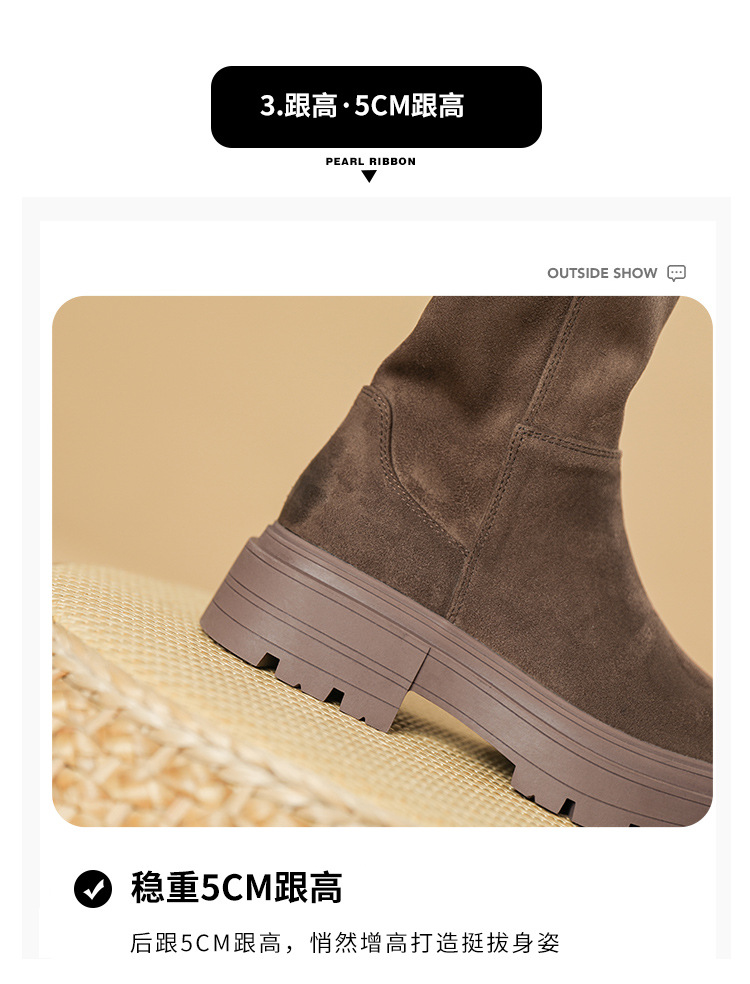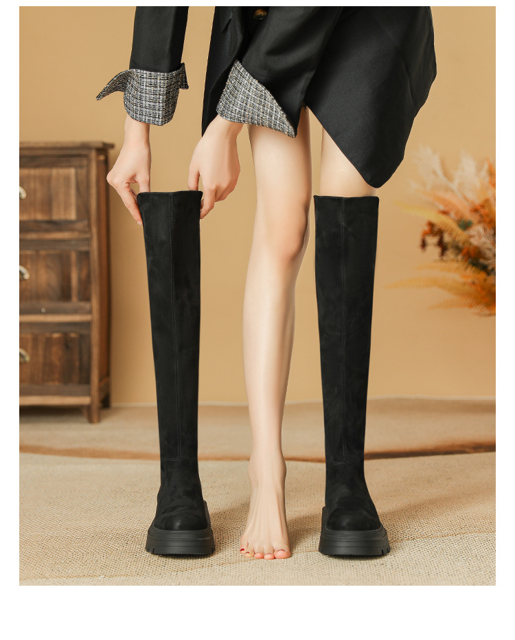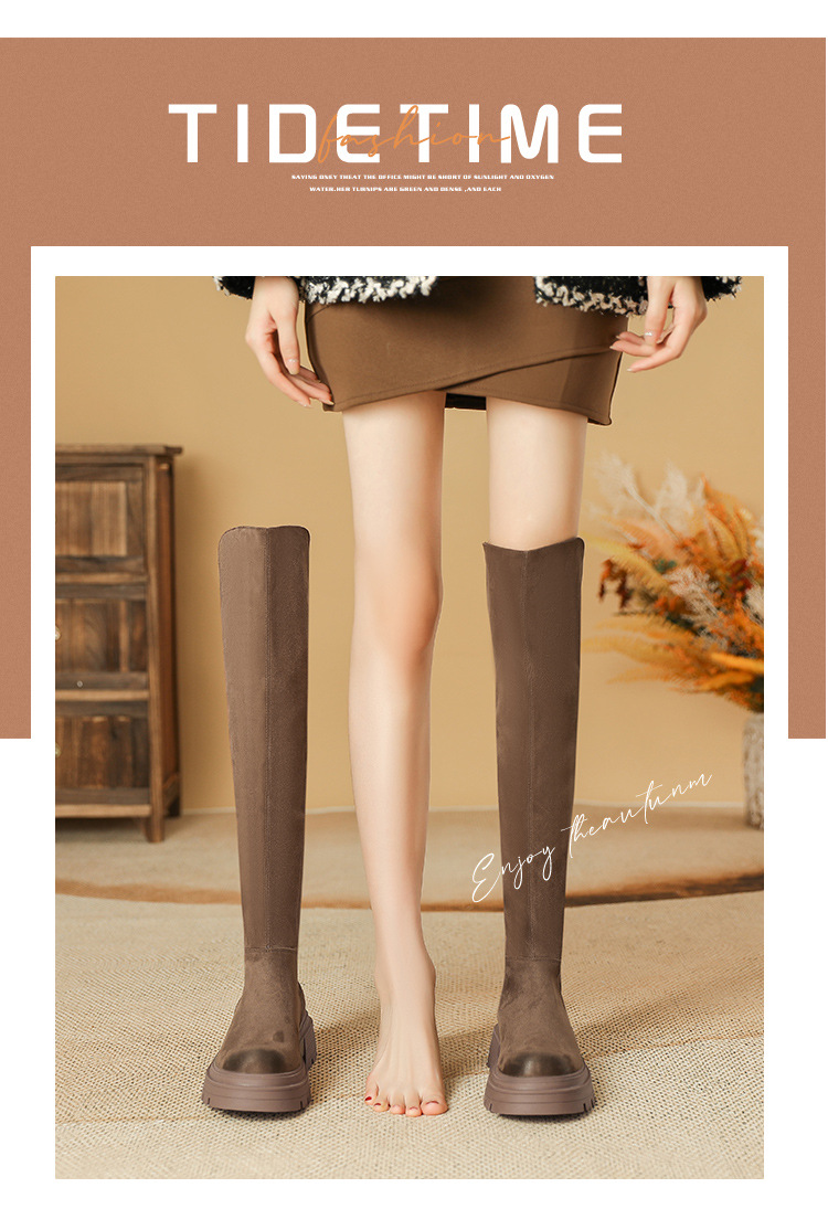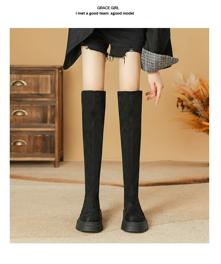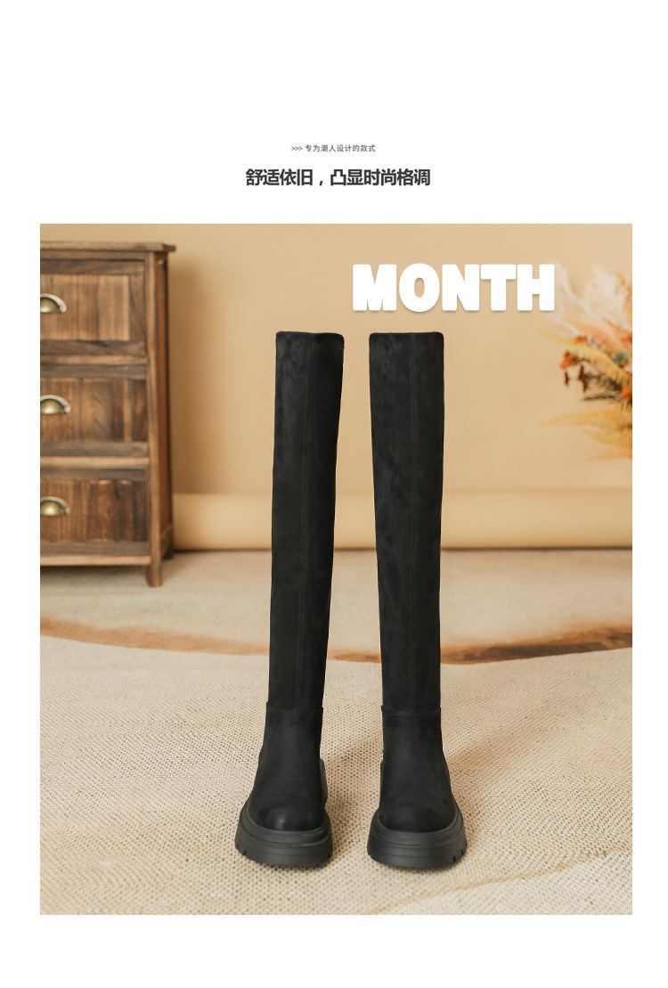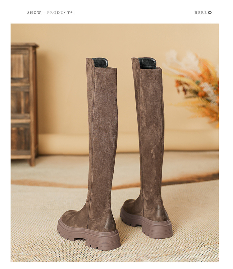 擦色复古过膝长筒靴小个子2023秋冬新款厚底瘦瘦靴弹力长靴女