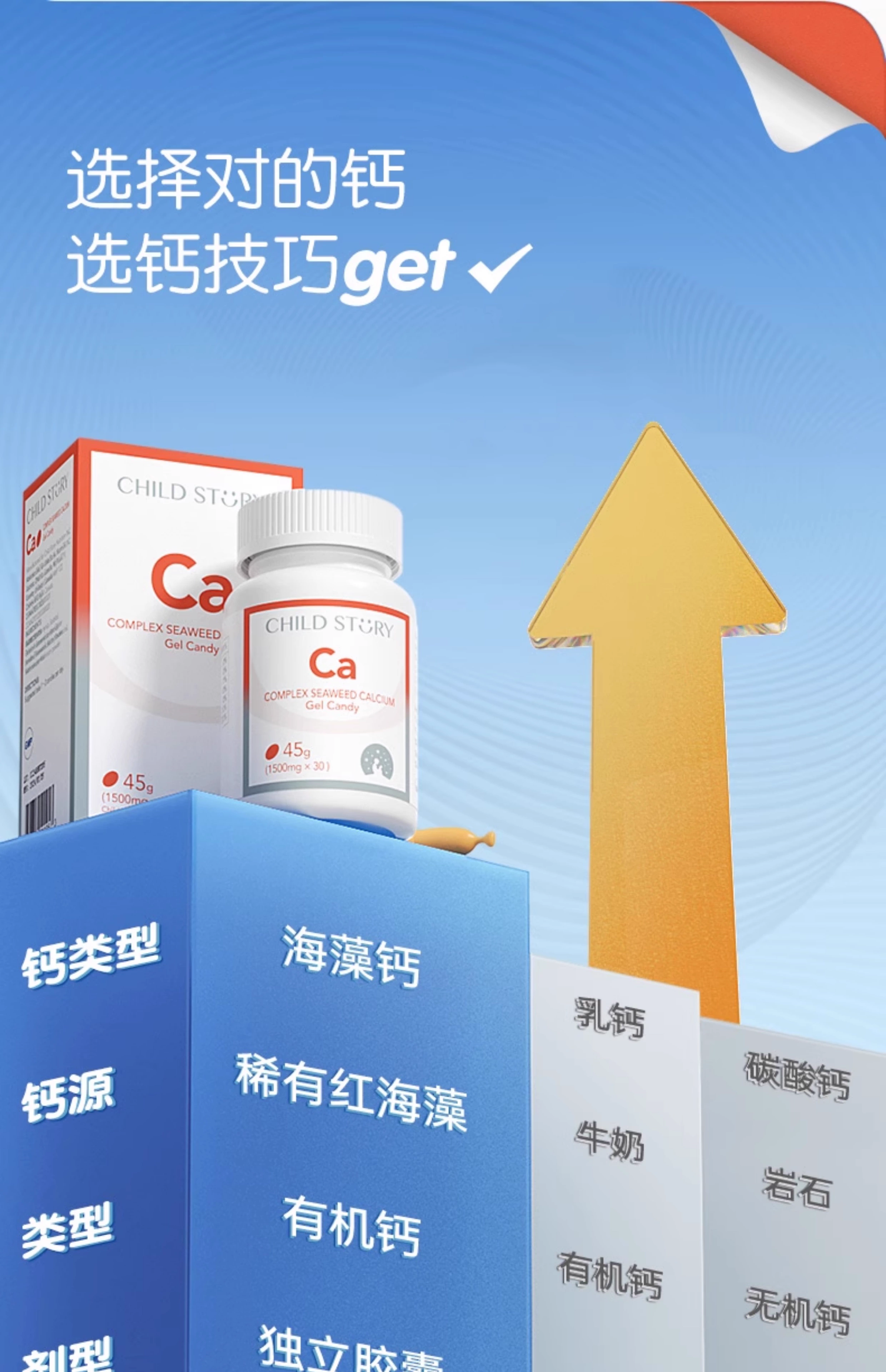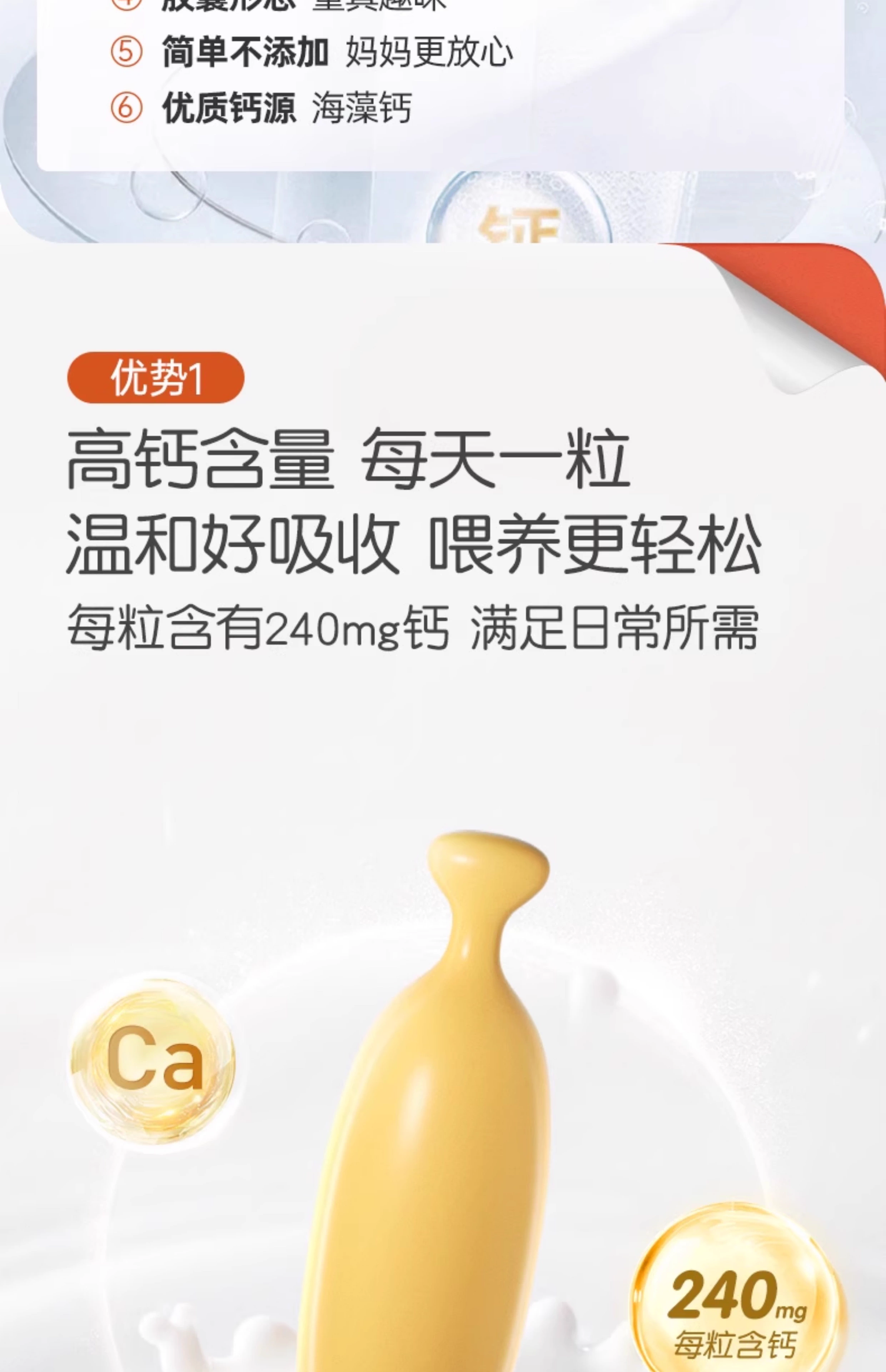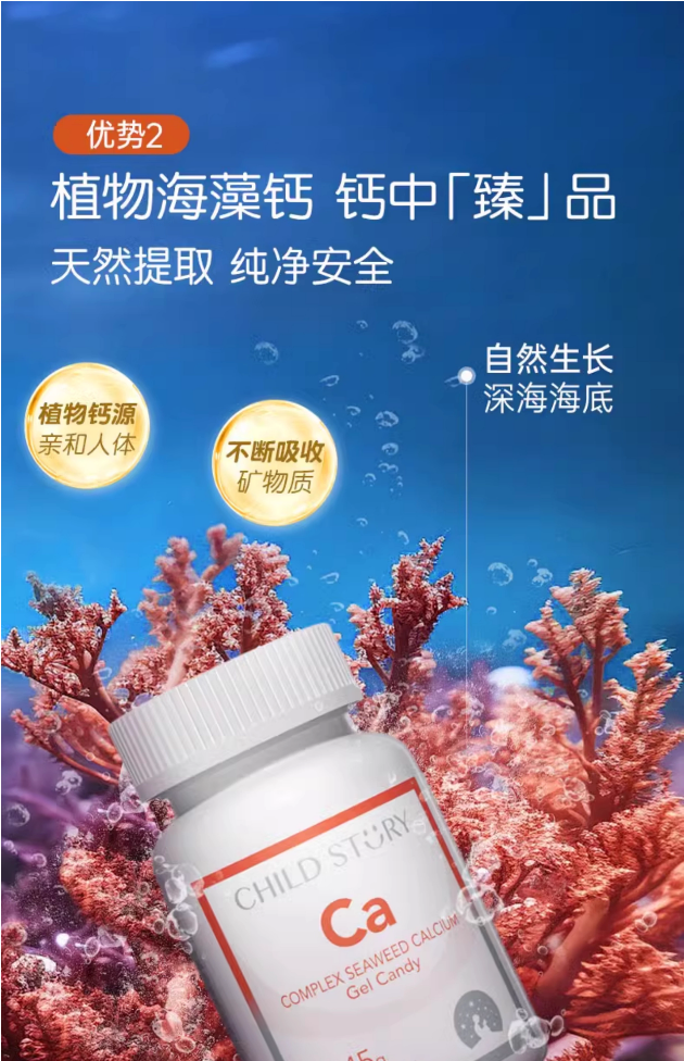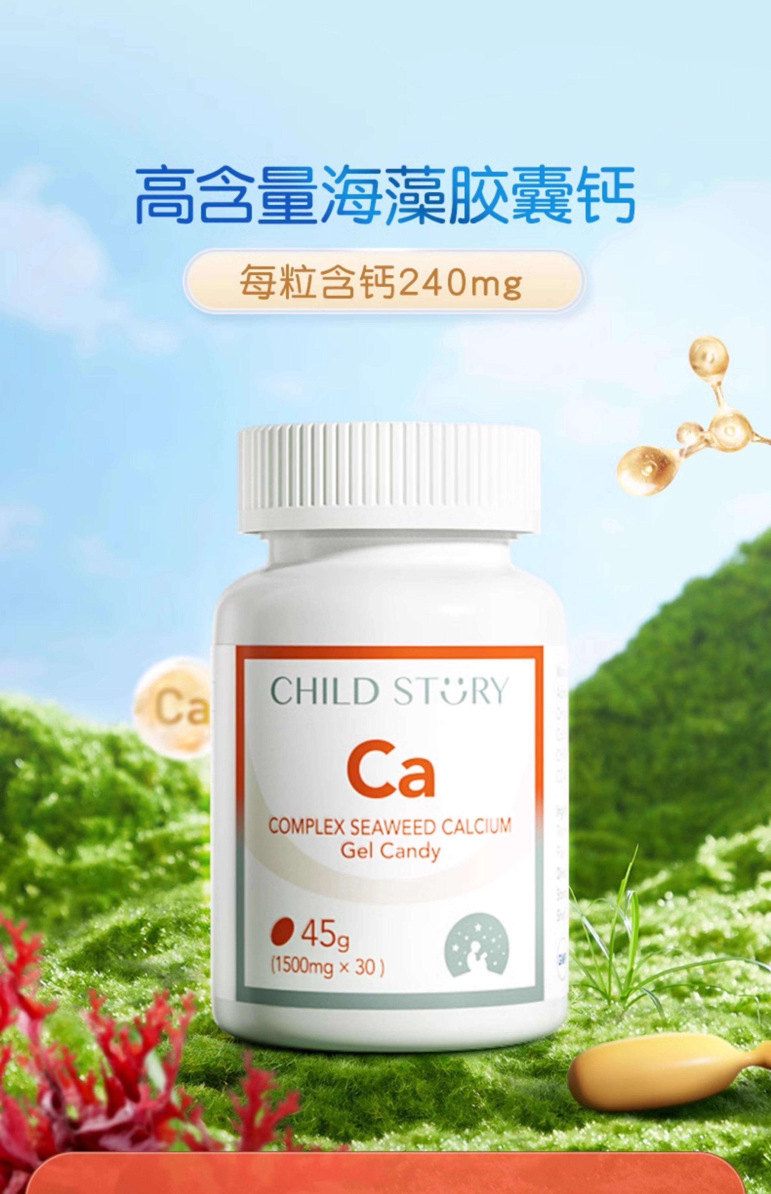 童年故事Child Story液体钙软胶囊 补钙 复合维生素VD+天然【海藻钙】30粒