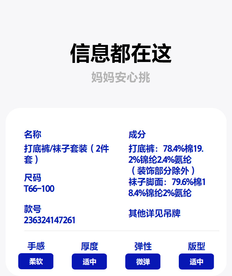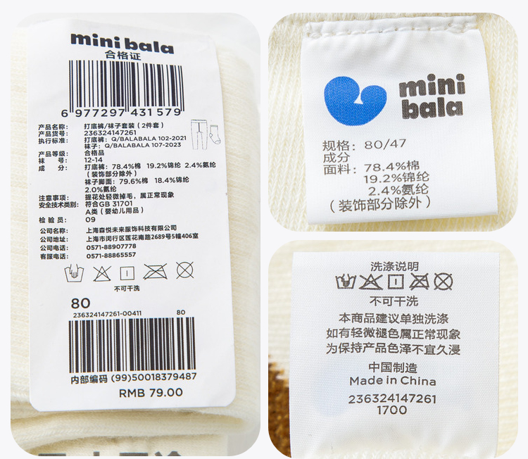 【2条装】迷你巴拉男女童棉弹打底裤宝宝亲肤袜套装不易变形