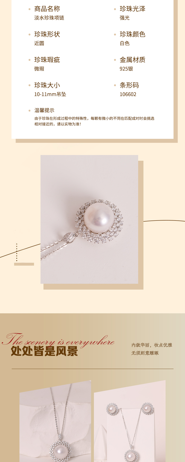 美裕 银925淡水珍珠吊坠(送银链)10-11mm白 106602