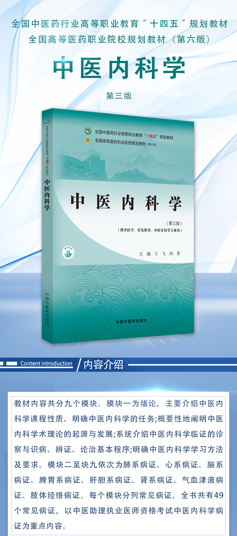 中医内科学 第3三版 十四五规划教材全国高等医药职业院校规划教材(第六版) 王飞 刘菁主编 供中医学针灸推拿中医骨伤学等专业用