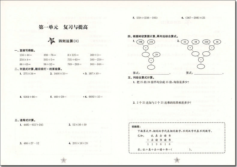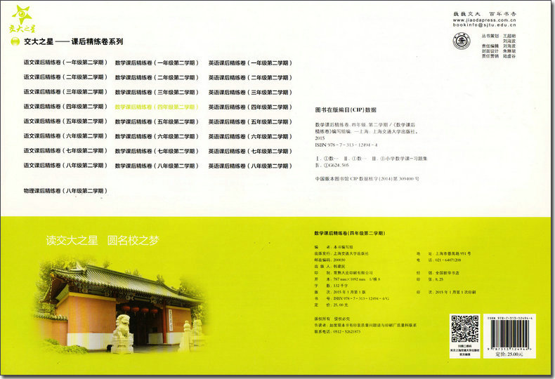 交大之星 课后精练卷 数学 4年级/四年级(下册)第二学期 A122与上海市二期课改教材配套 课后巩固 同步精练