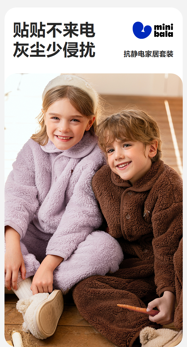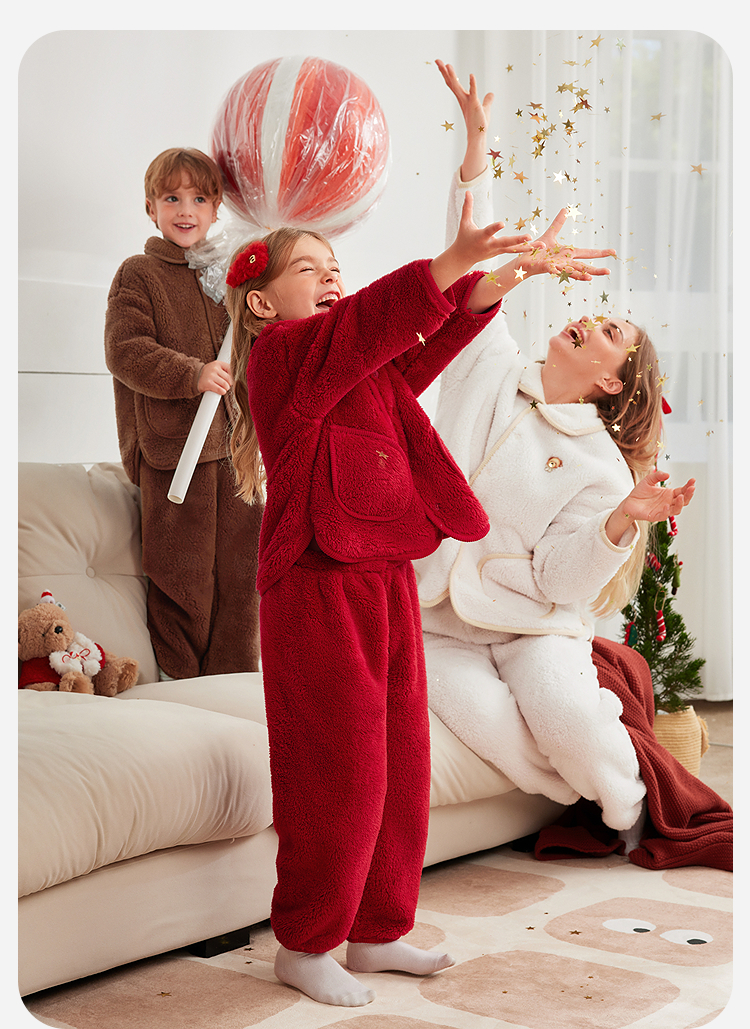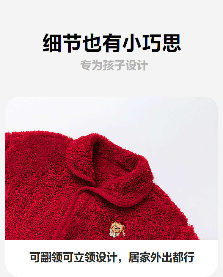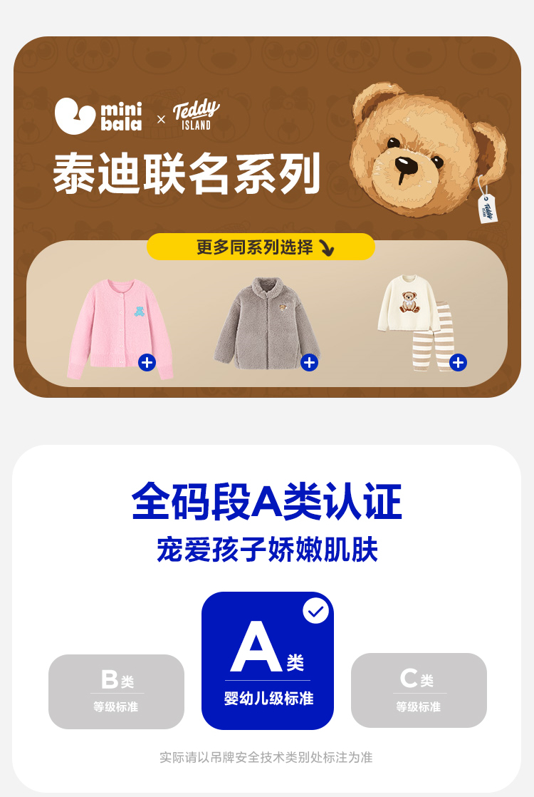 【泰迪熊IP联名】迷你巴拉儿童家居服套装男女童可外出亲子加绒款