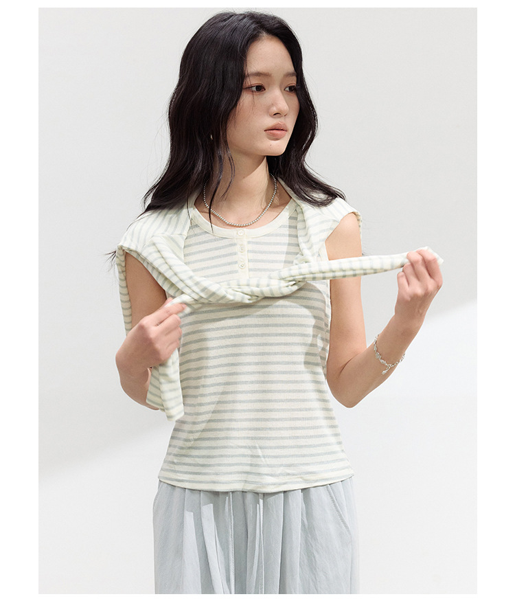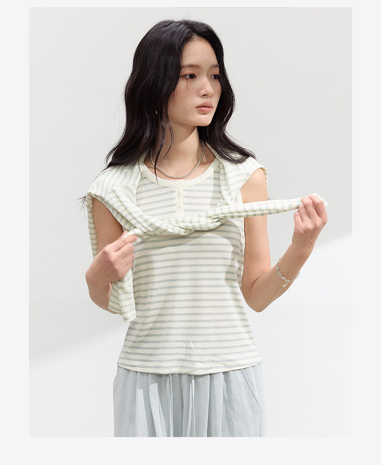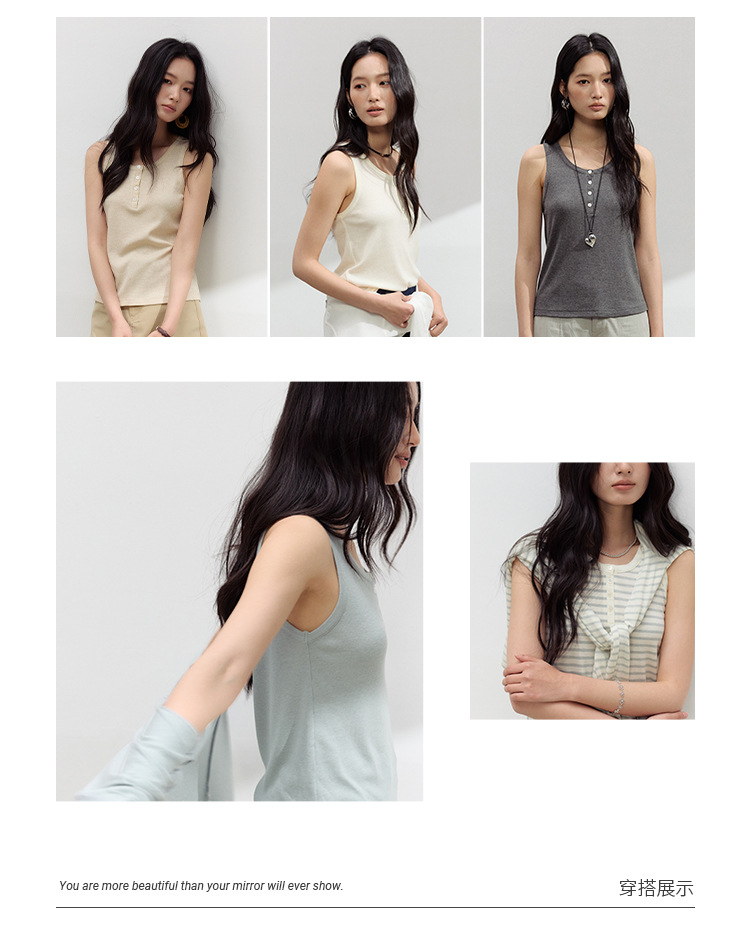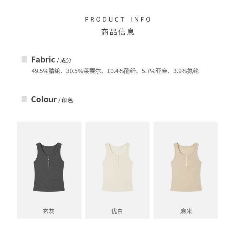 (合作款)【2026夏季新品】螺纹亚麻 · 纽扣背心yc0409008