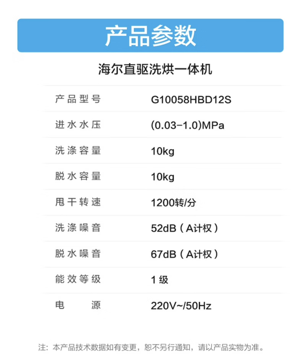 海尔(Haier)洗衣机 XQG100-PBSNEG87AU1
