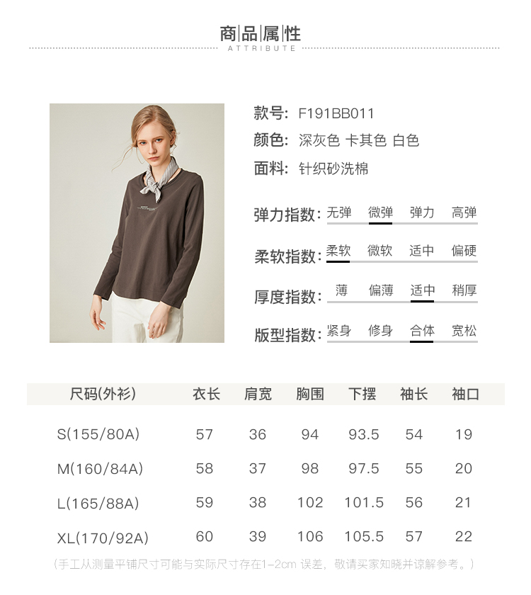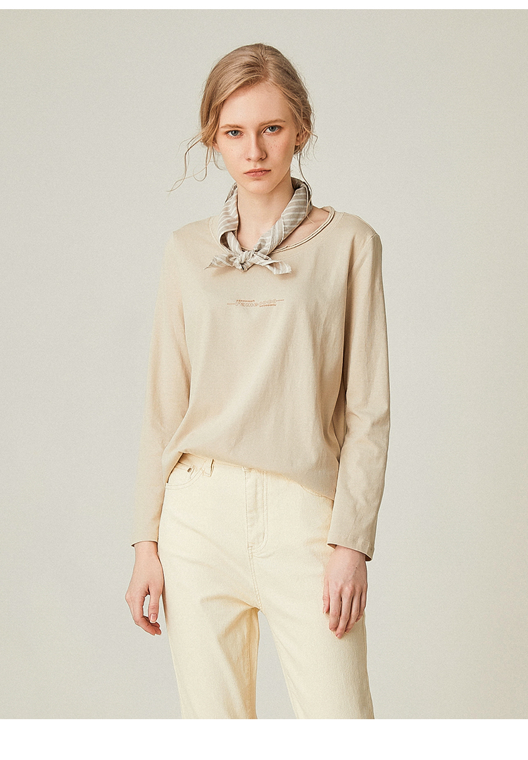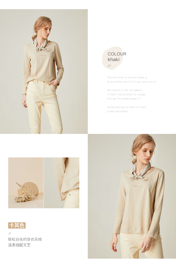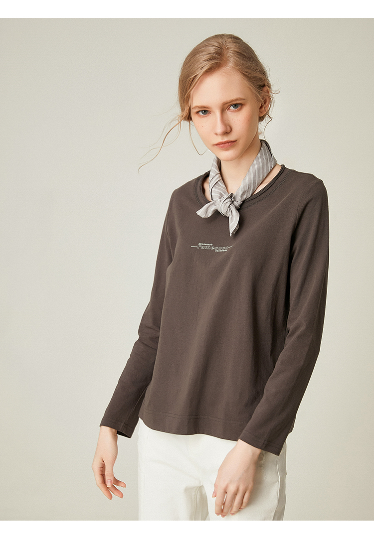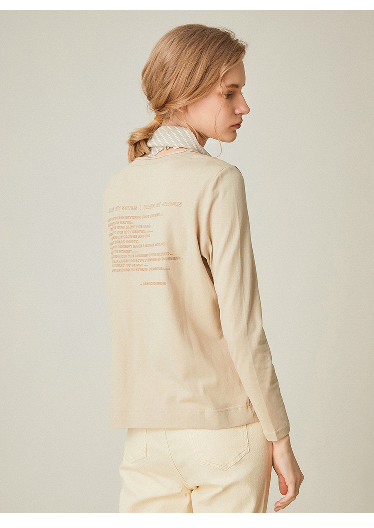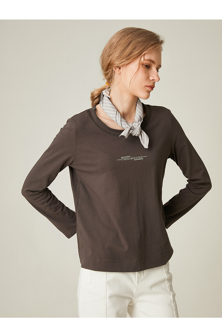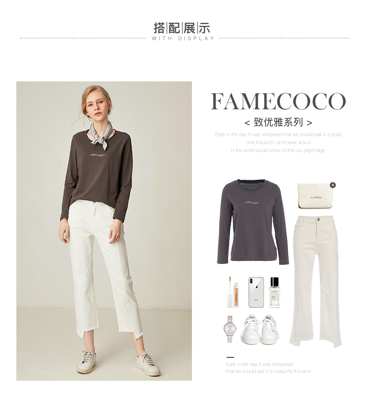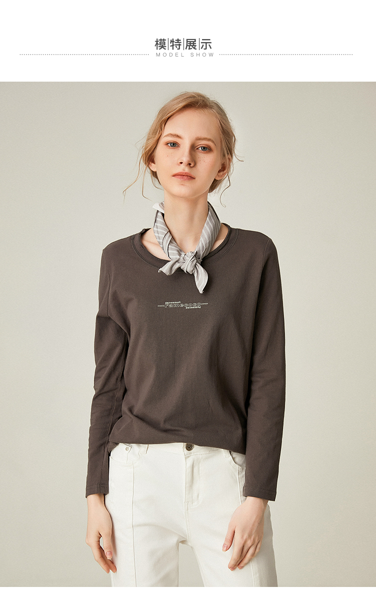 famecoco范可儿全棉t恤长袖白色纯棉圆领字母打底上衣F191BB011
