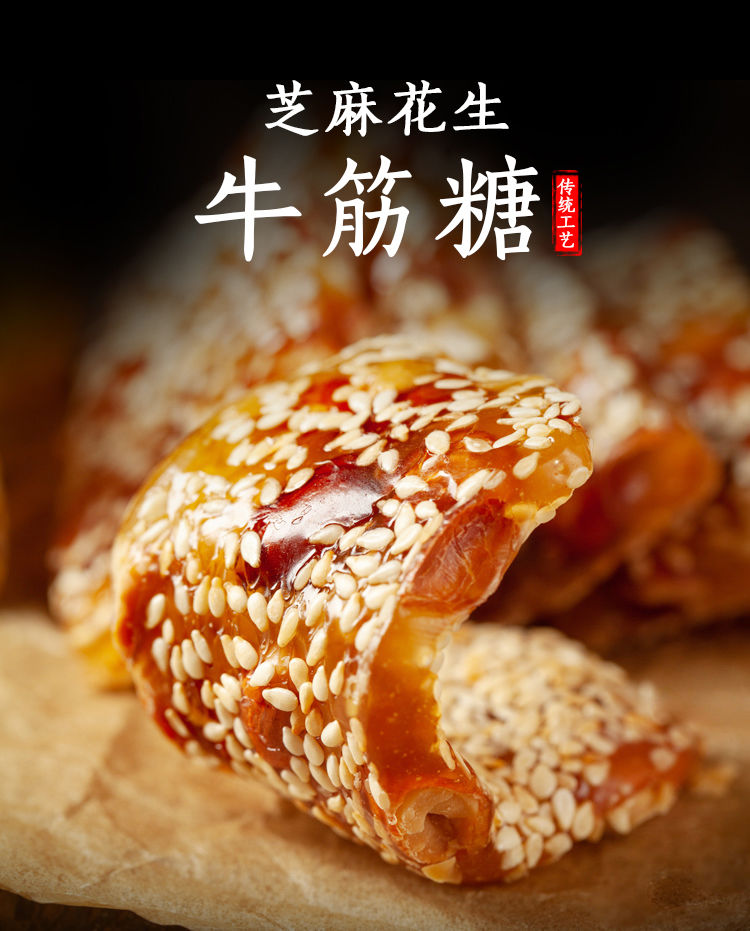 【儿时的味道!匠心纯手工牛皮糖】芝麻花生和麦芽糖约个会!香甜不腻,口感筋道,软糯耐嚼,老式怀旧芝麻花生牛筋糖儿时麦芽糖果拉丝-特价清仓