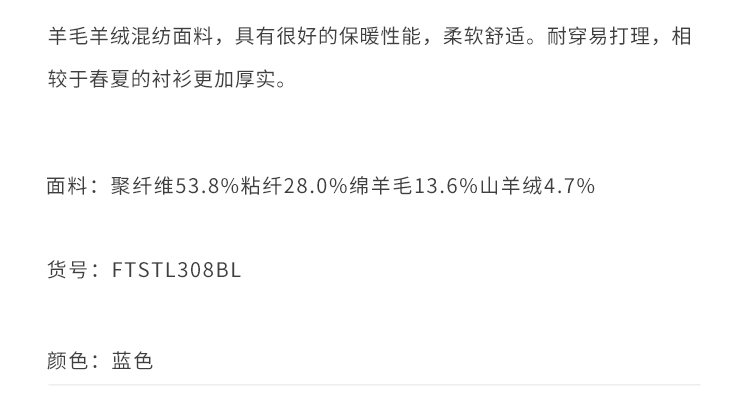 callisto蓝色羊毛混纺长袖衬衫
