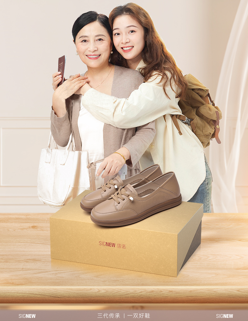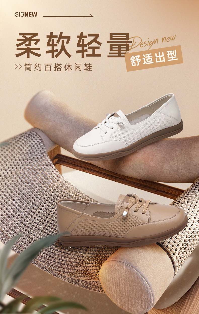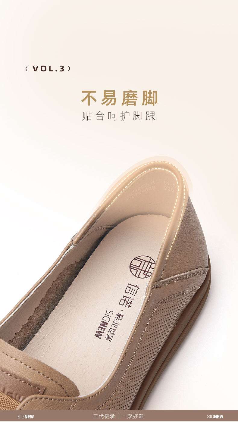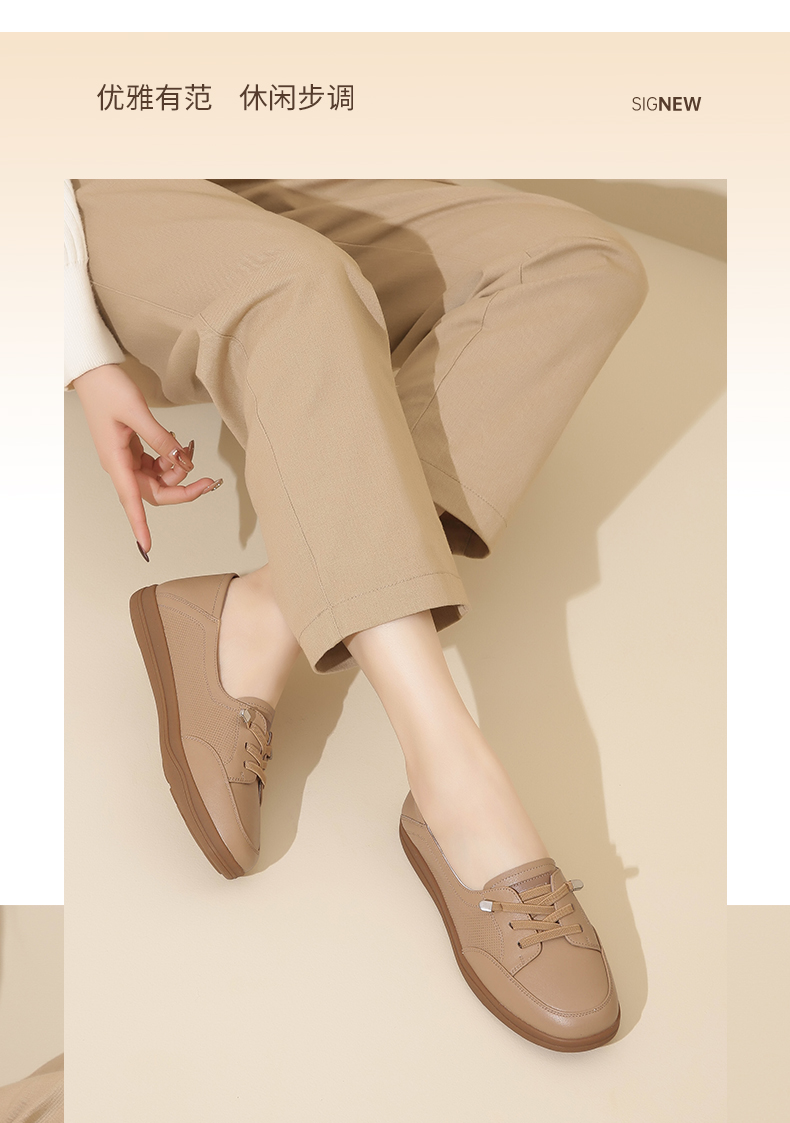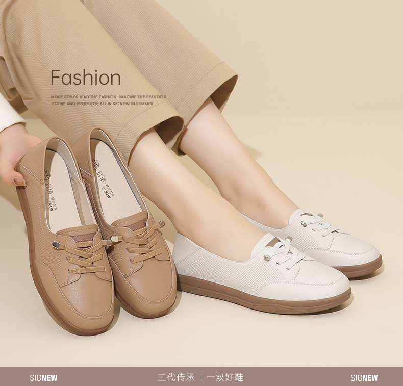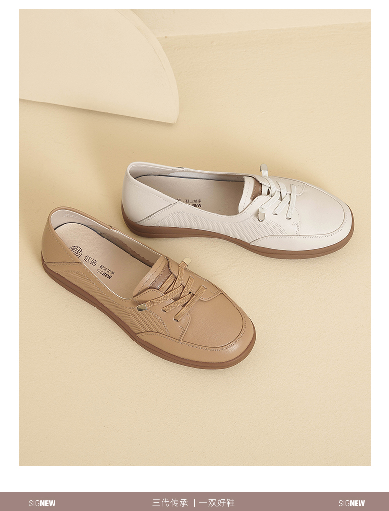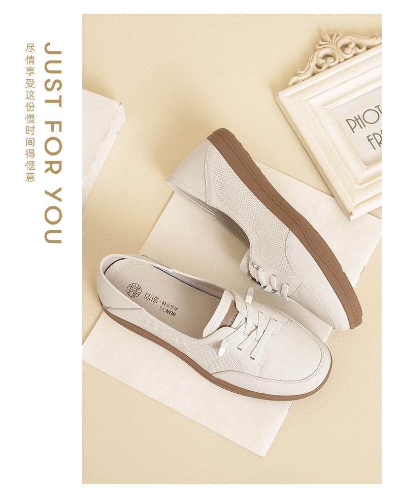 信诺2024春秋新款小白鞋舒适透气单鞋可可鞋休闲软底女鞋妈妈鞋Q3097-6T