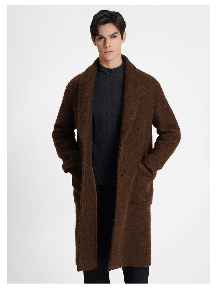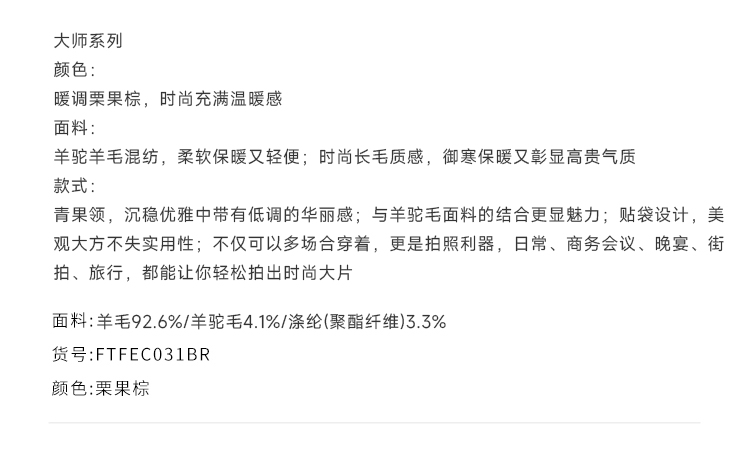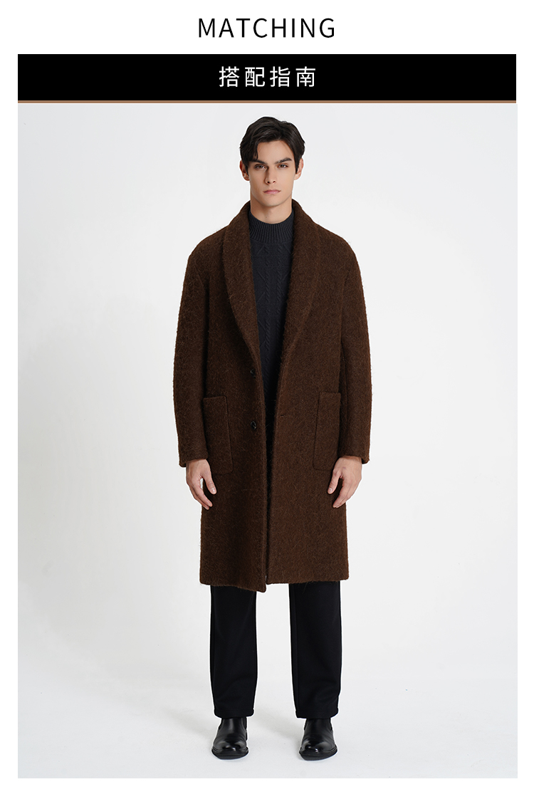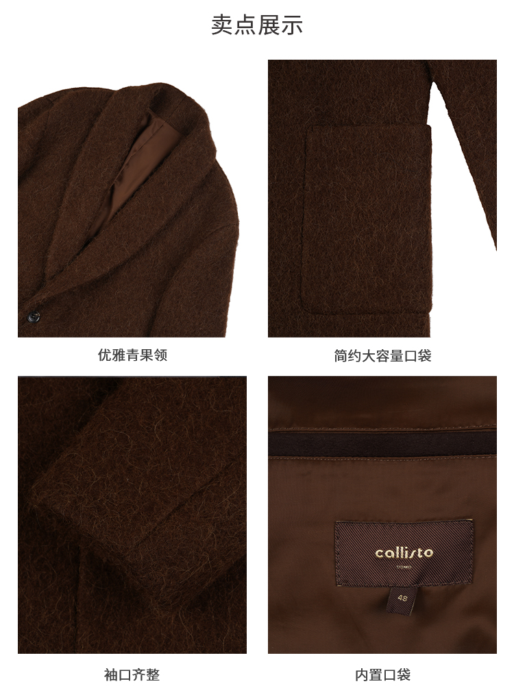 callisto大师系列咖啡色绵羊毛混纺大衣