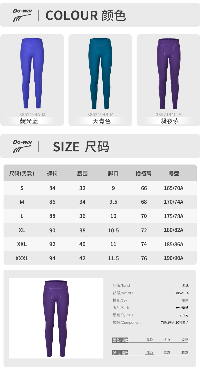 多威长裤新款男速干柔软后口袋弹力紧身裤3852194