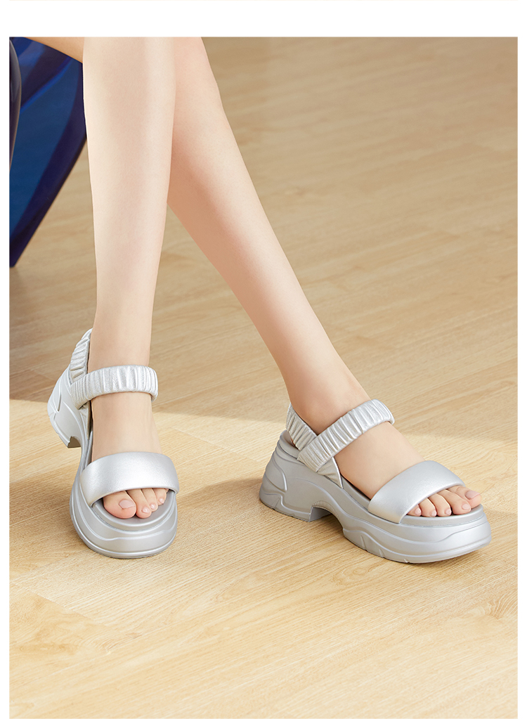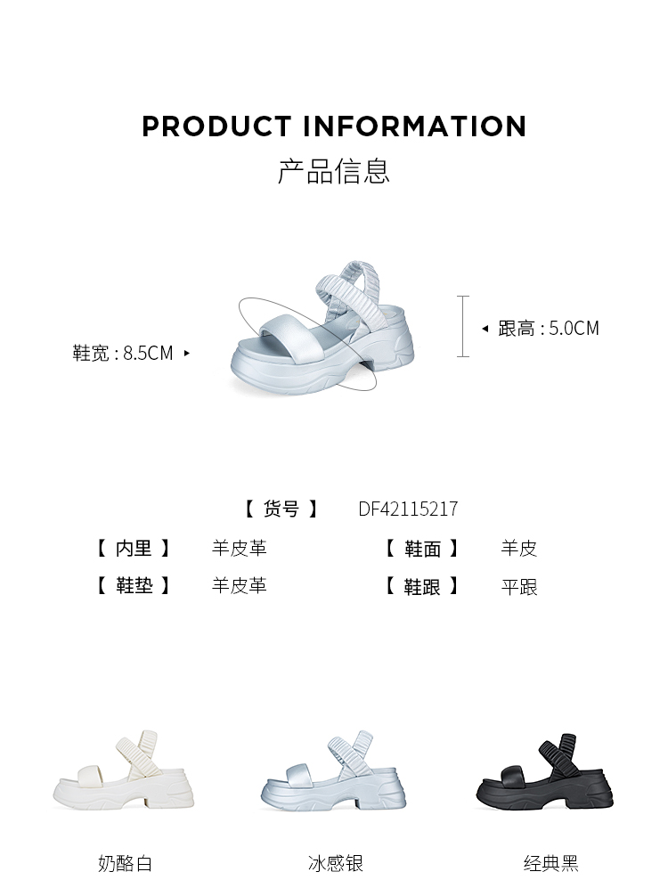 D:FUSE迪芙斯2024夏季新款吐司面包凉鞋松糕厚底增高一字带罗马凉鞋DF42115217