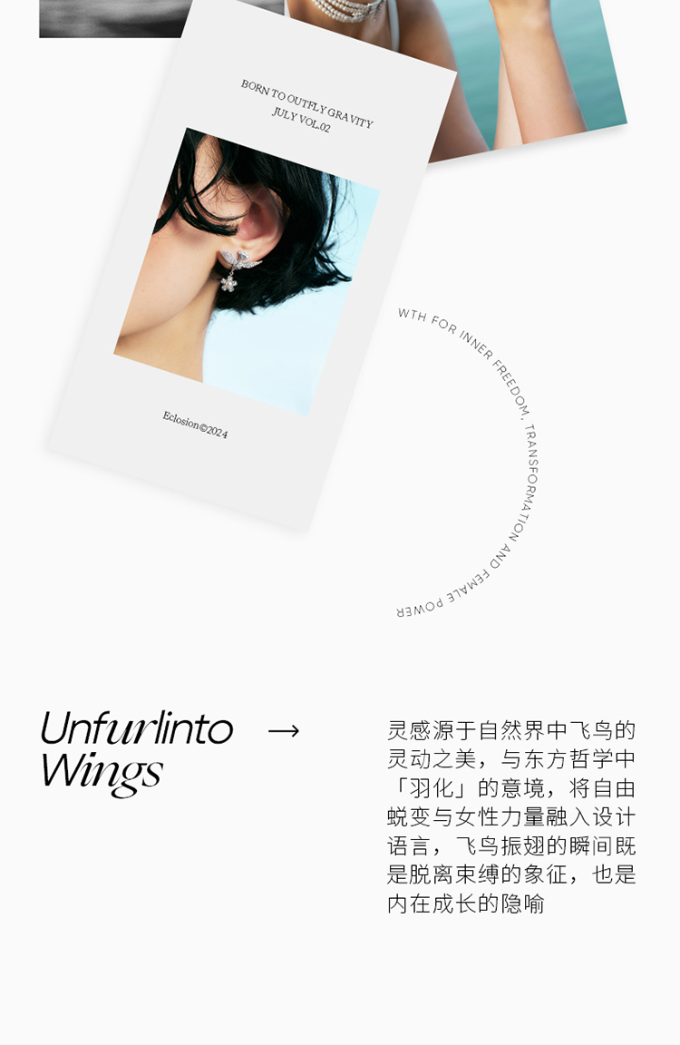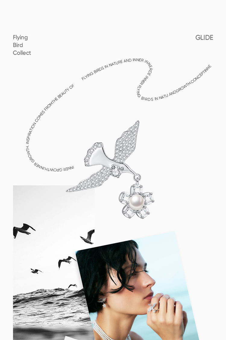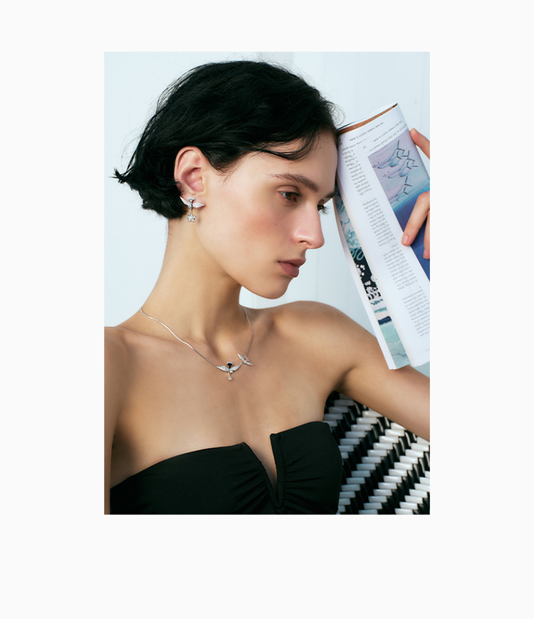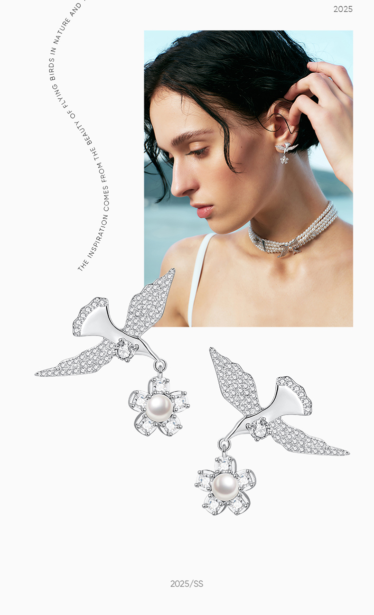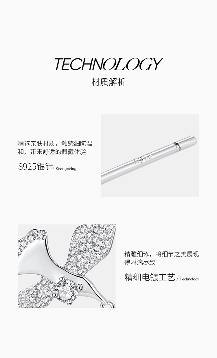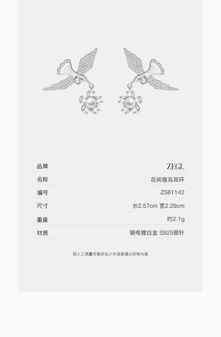 ZEGL真柳设计师飞鸟系列闪锆耳环女气质大气耳钉适合圆脸的耳饰