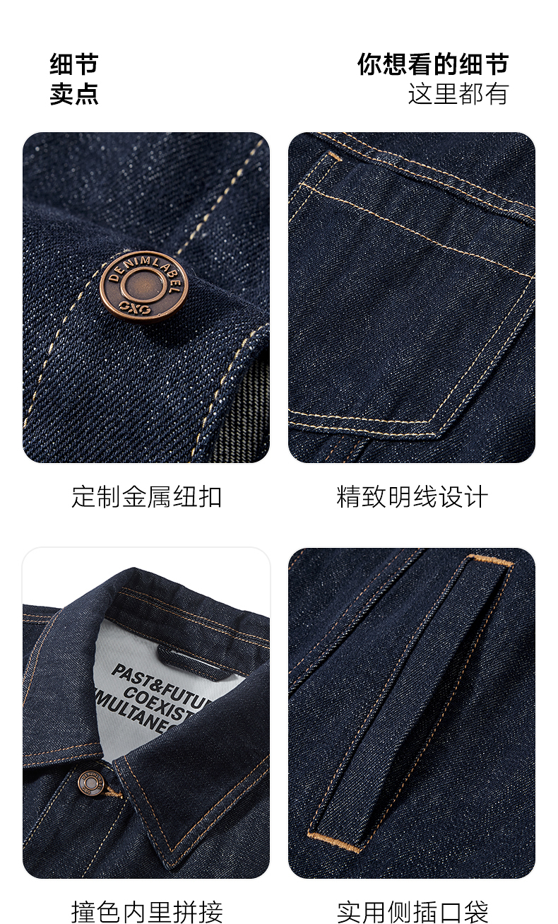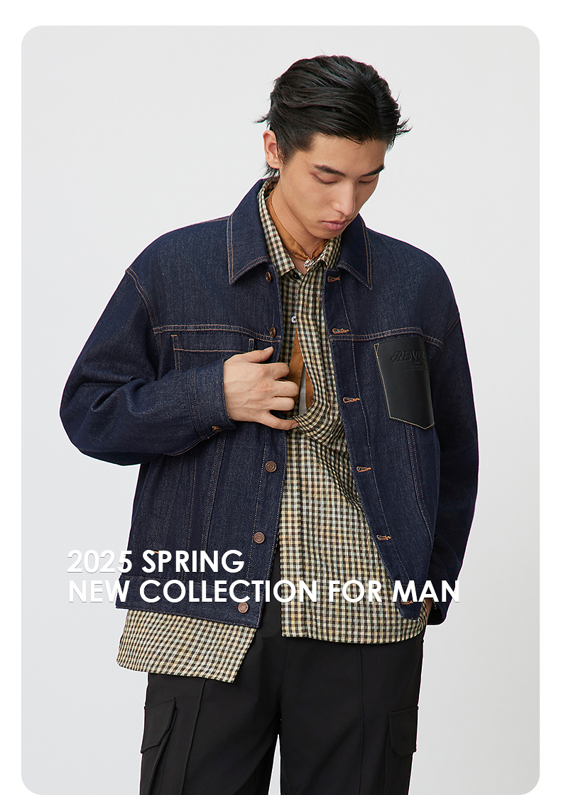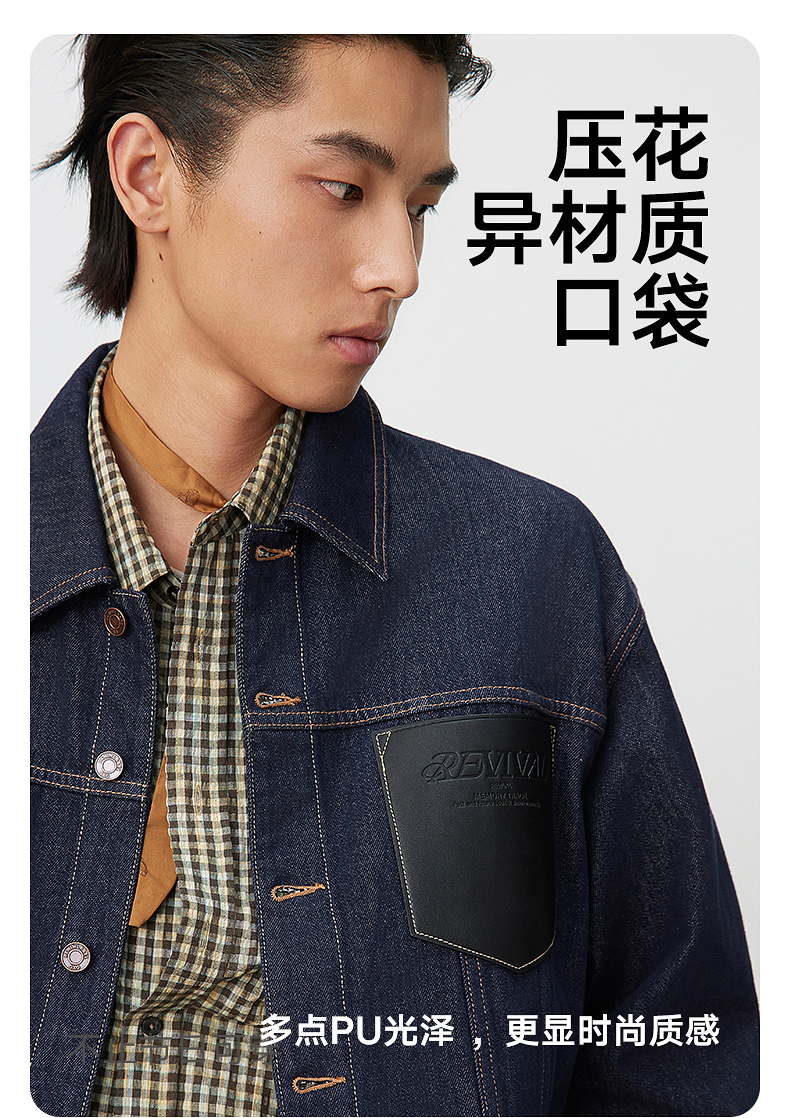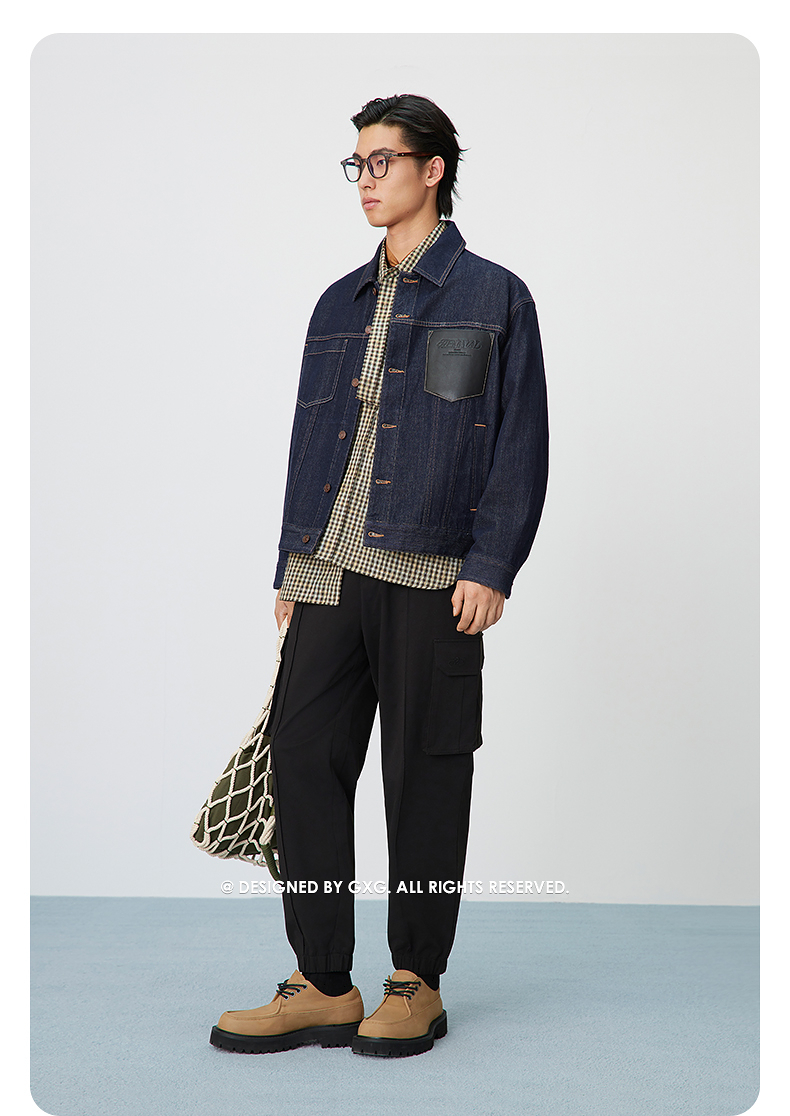 GXG男装 不易褪色经典PU拼接压花经典牛仔翻领夹克 25年春热卖