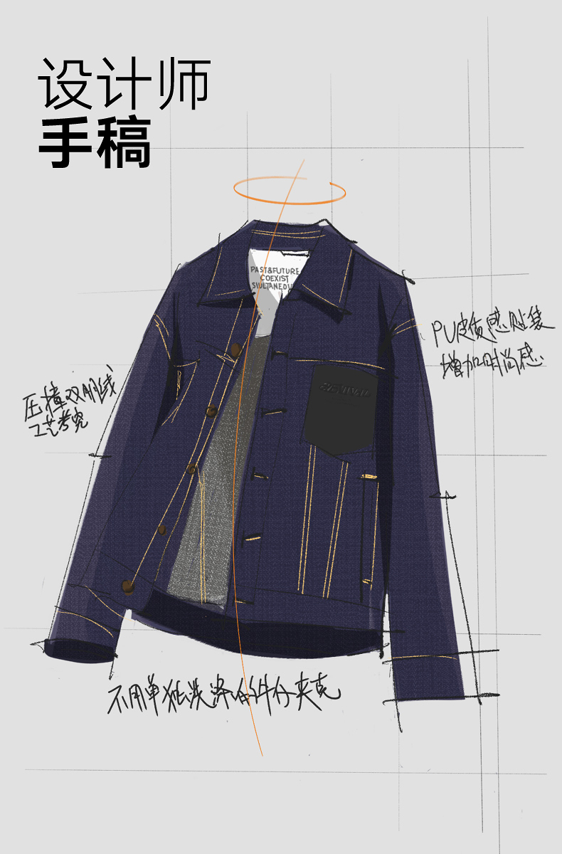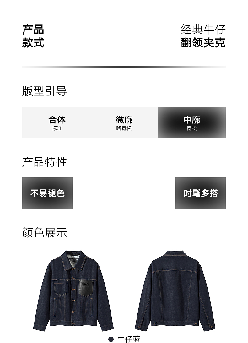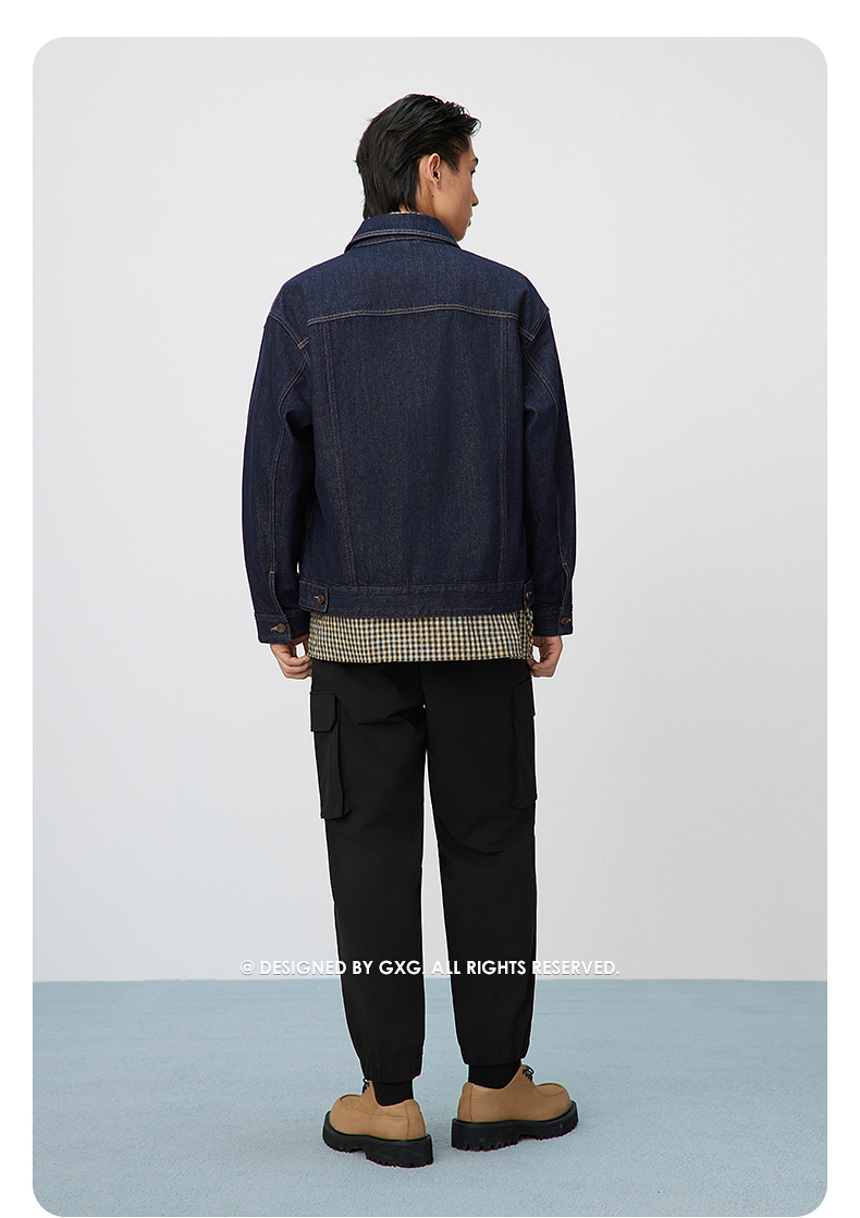 GXG男装 不易褪色经典PU拼接压花经典牛仔翻领夹克 25年春热卖