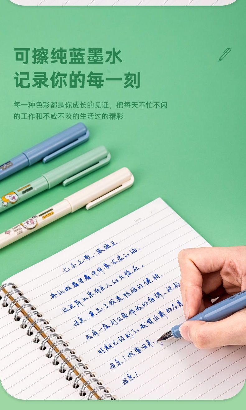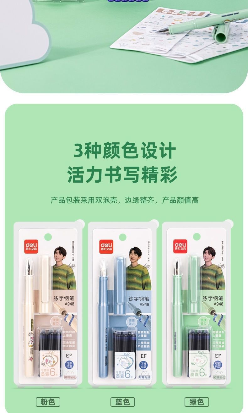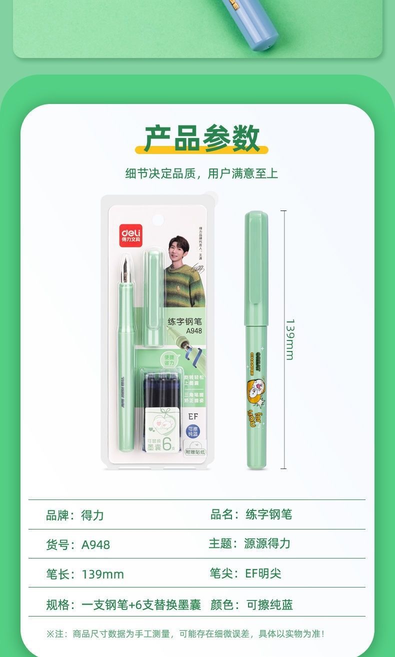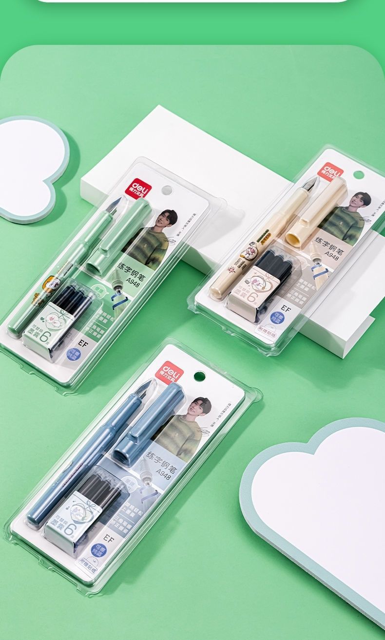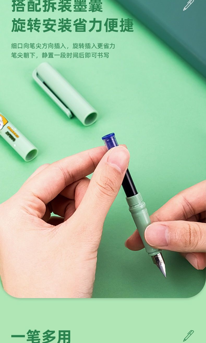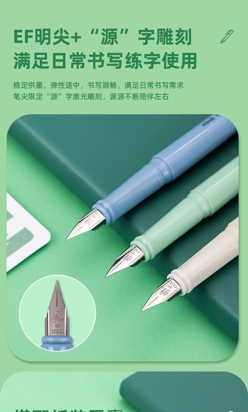 【“源源不断”】得力练字钢笔 学生专用可换墨囊 搭配拆装墨囊套装 安装便捷 明尖正姿可擦 写错即擦 学生 成人硬笔书法A948