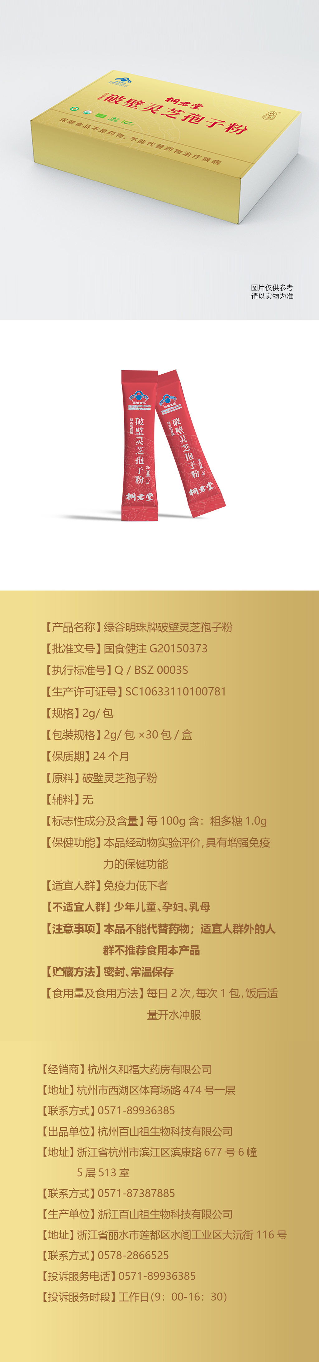 绿谷明珠牌破壁灵芝孢子粉 2g*30条