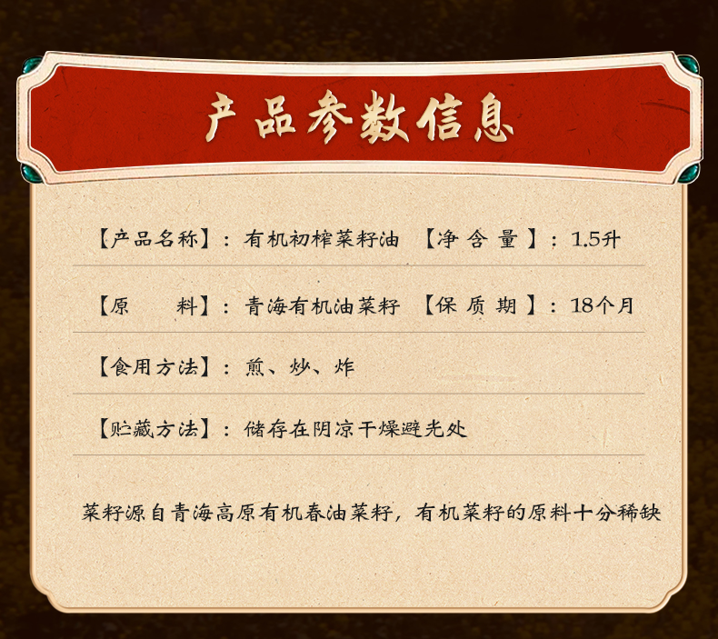 丨有机丨刘家香初榨菜籽油 非转基因 精选原料 小磨鲜榨 地道原味