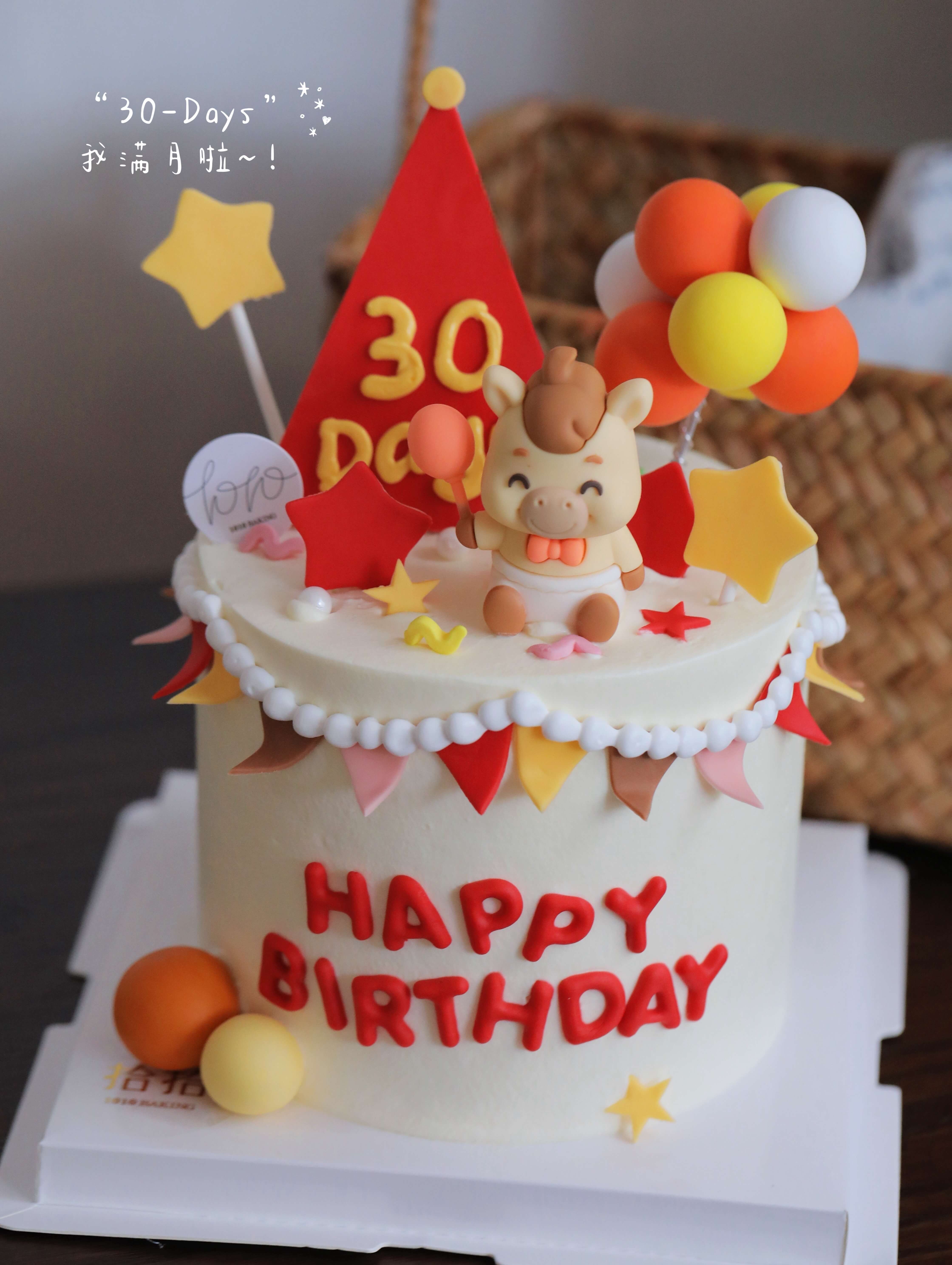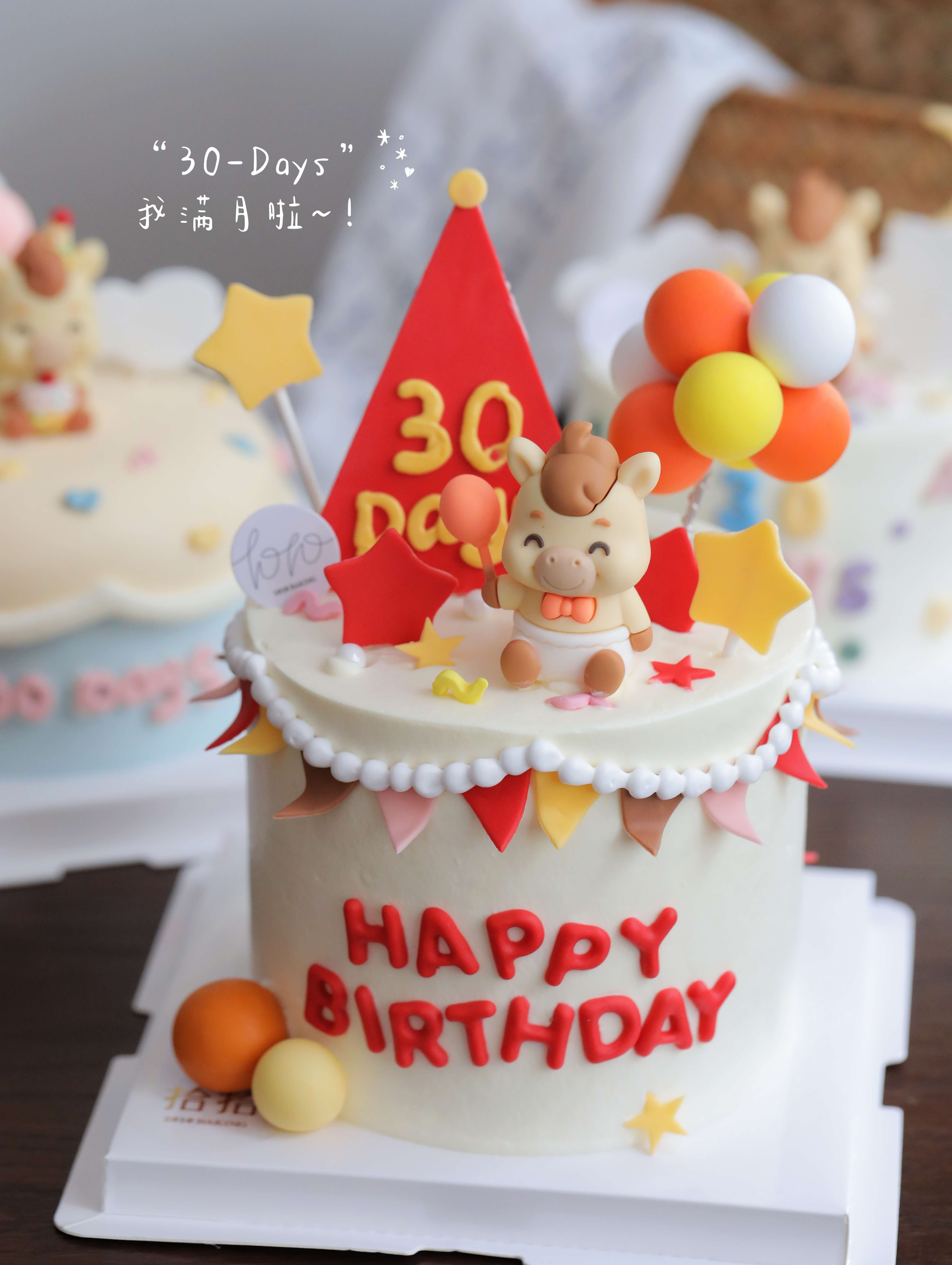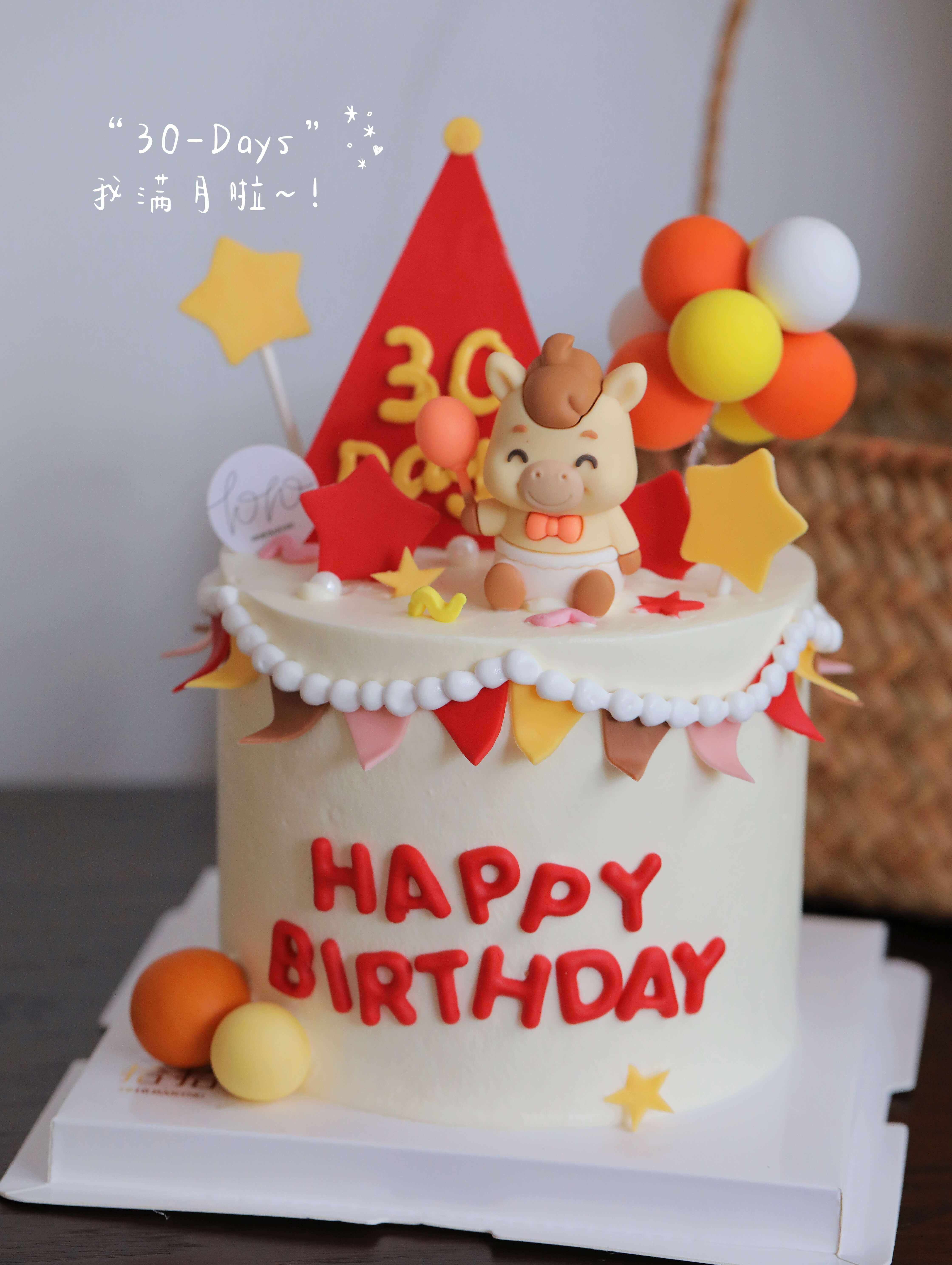 「举气球的马宝宝」满月百日周岁生肖·翻糖巧克力·100%动物奶油(附图5寸加高·提前48小时预订)