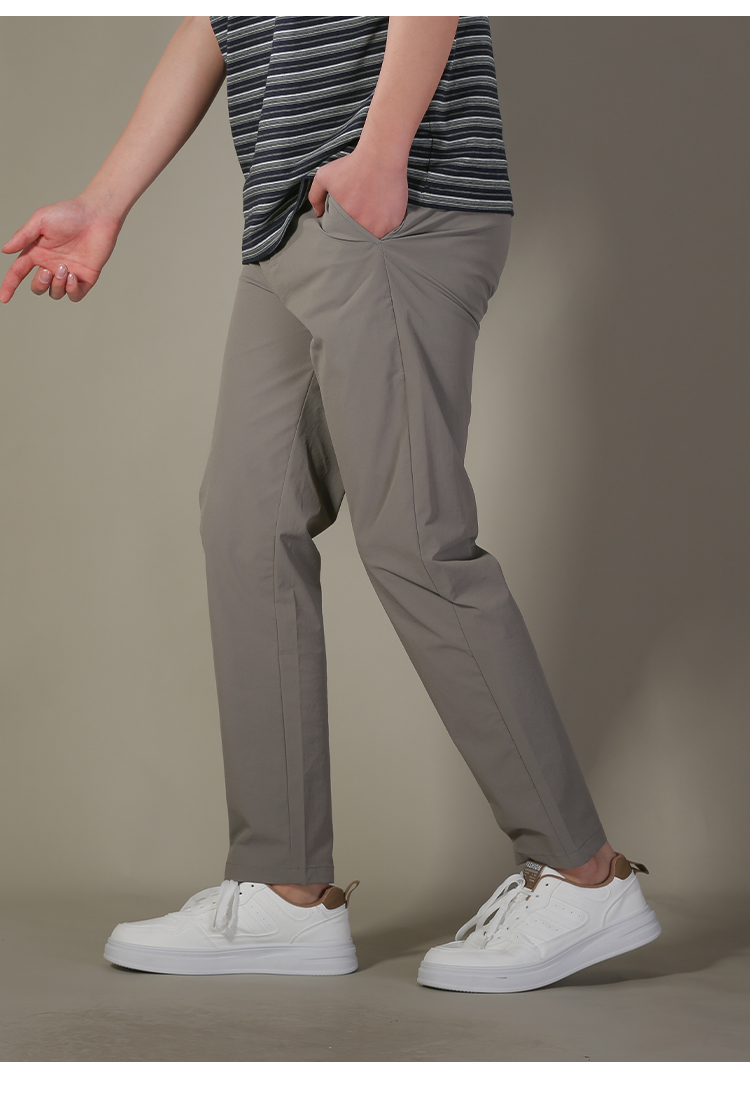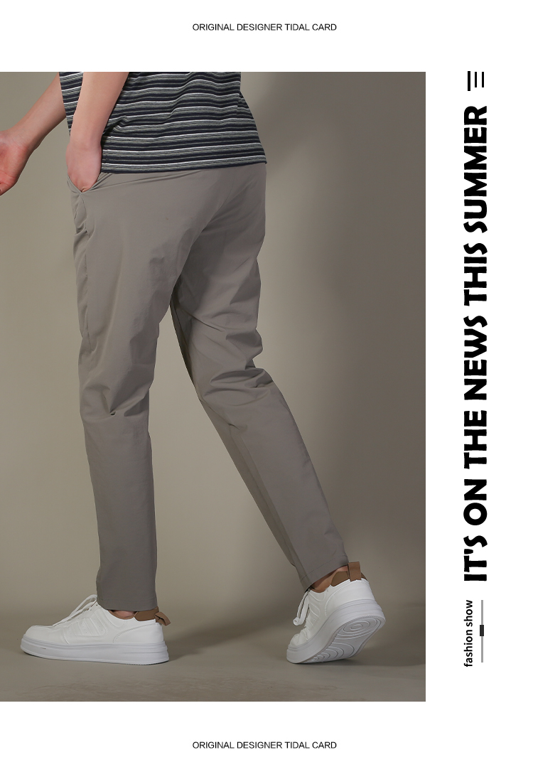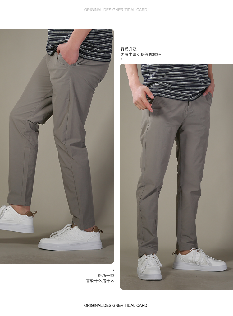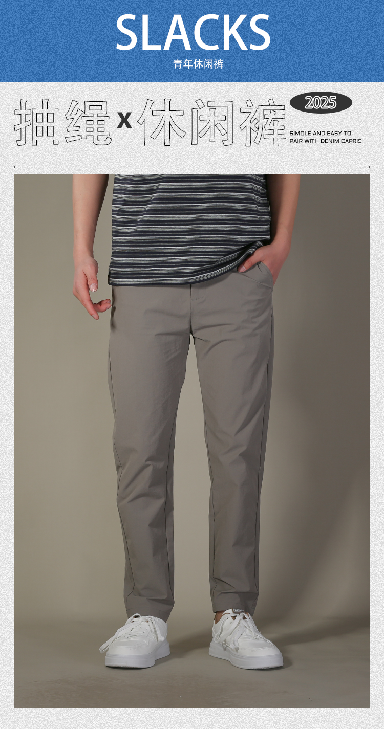 DRONKOO 2026 正常腰左袋绣线织唛后袋四竖绣线直弹薄休闲长裤