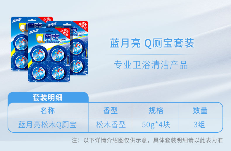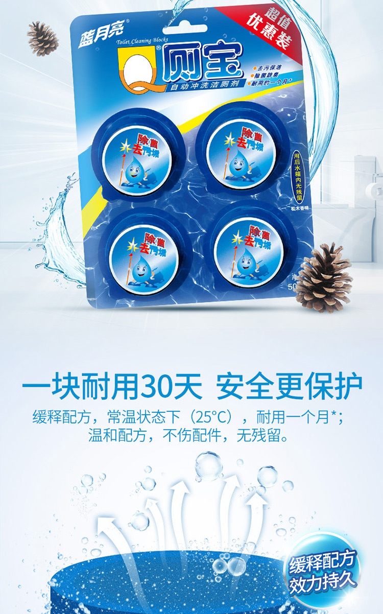 蓝月亮 Q厕宝 50g*12(松木香型) 洁厕宝 洁厕块 洁厕灵 蓝泡泡 厕所马桶清洁剂 去污除菌 去异味 耐用