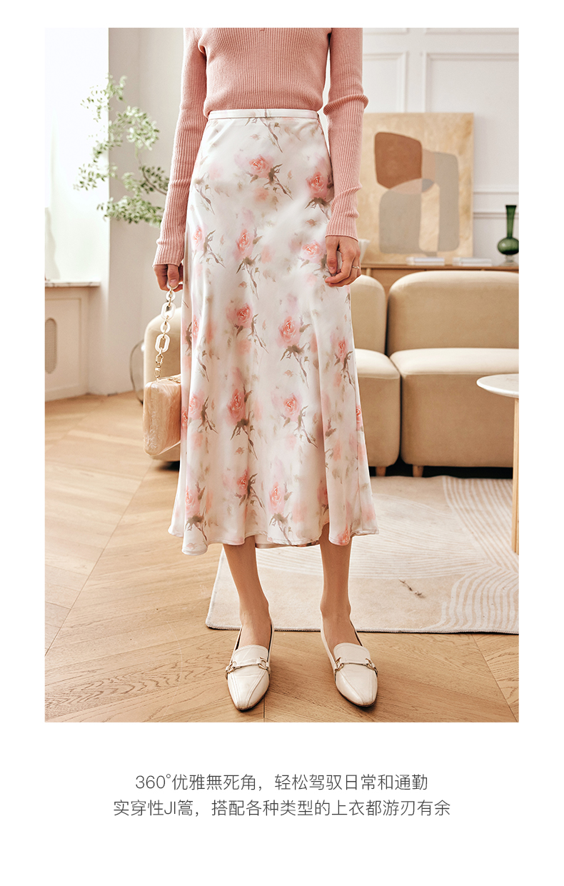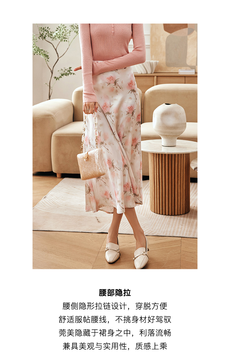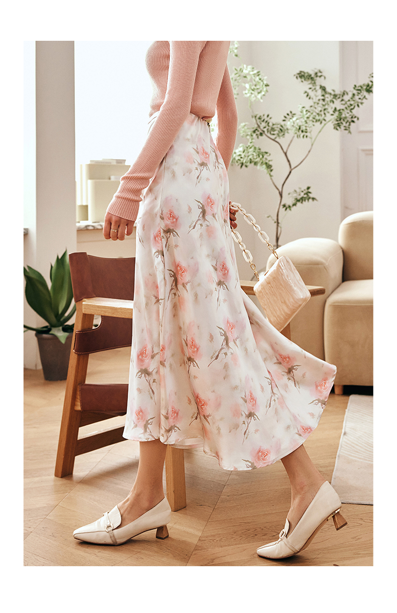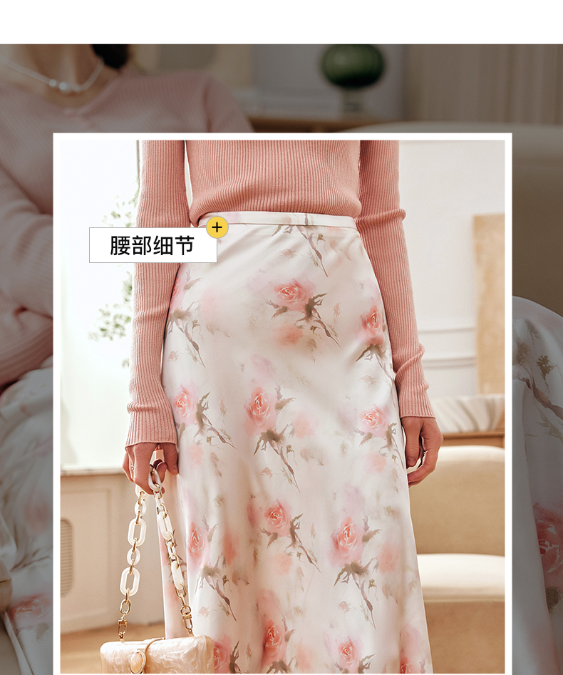 OLrain欧芮儿法式粉色碎花半身裙女夏季2023新款高腰中长款A字裙