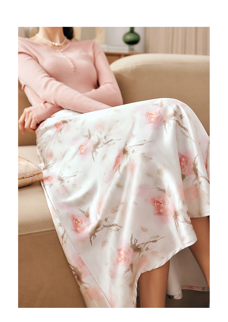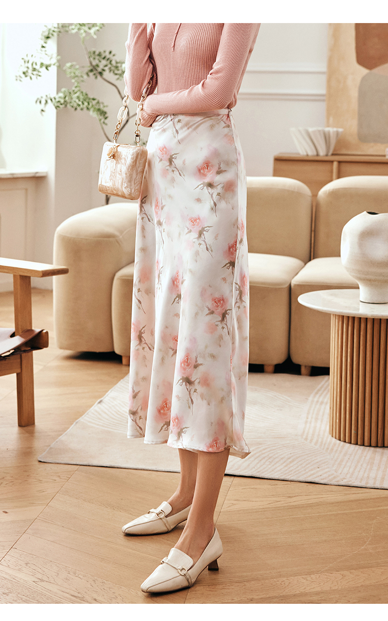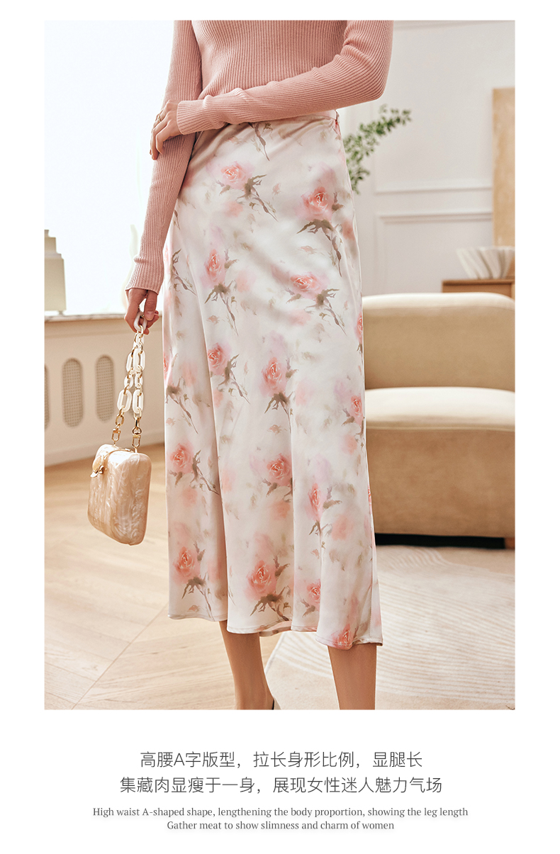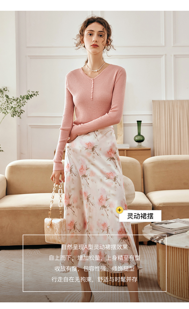 OLrain欧芮儿法式粉色碎花半身裙女夏季2023新款高腰中长款A字裙