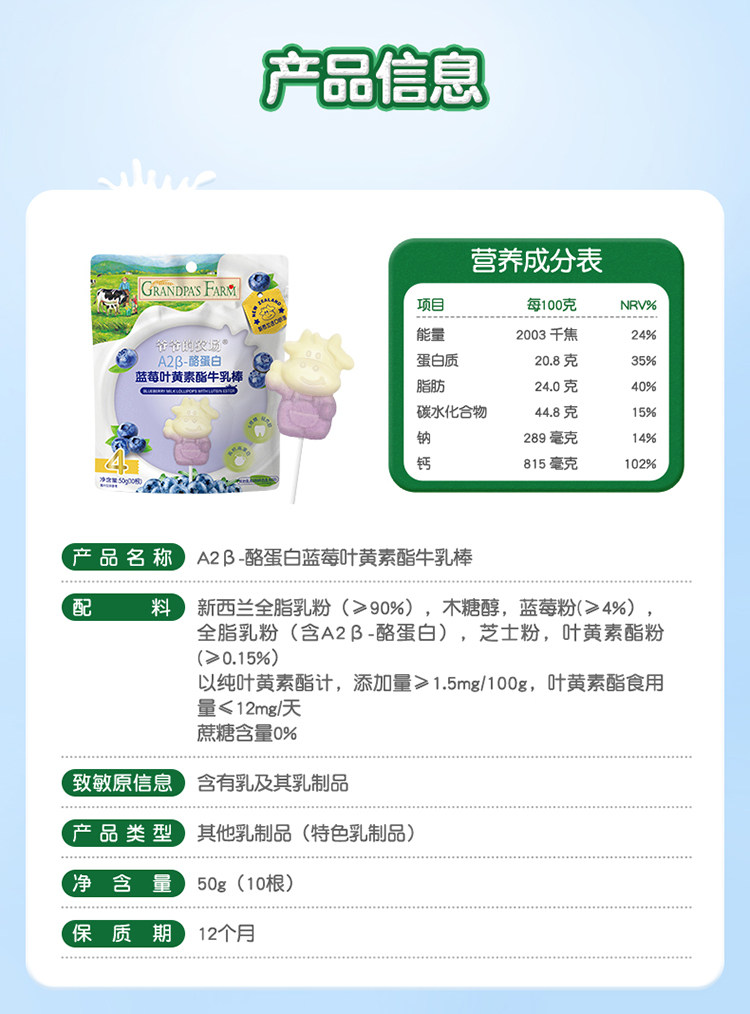 爷爷的农场A2β-酪蛋白蓝莓叶黄素酯牛乳棒50g