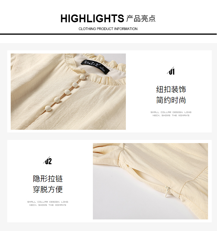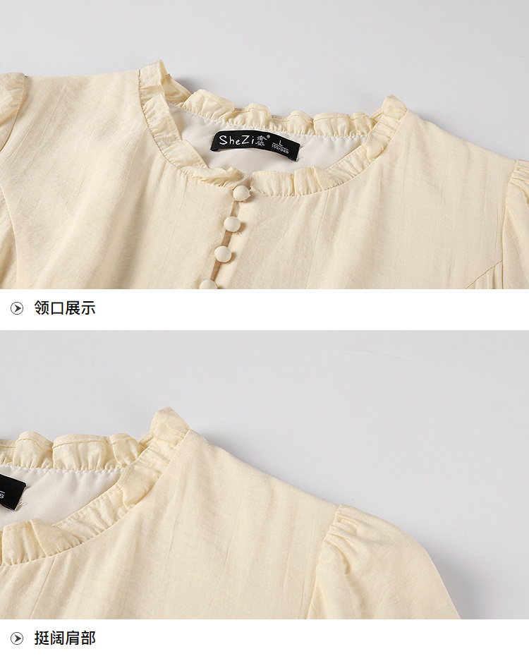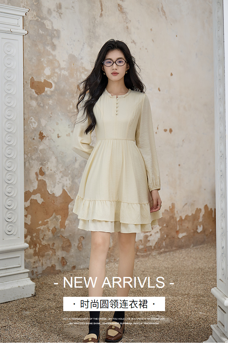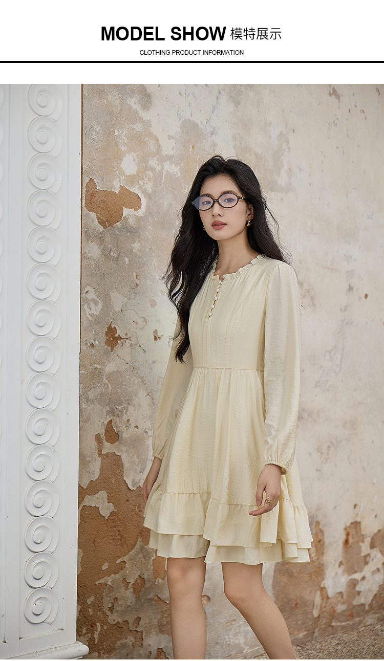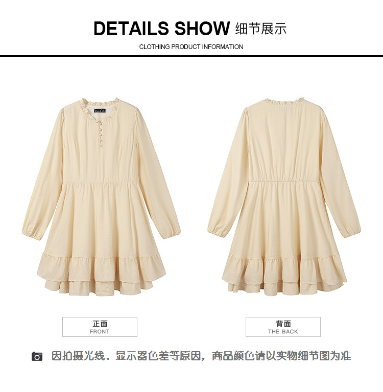 奢姿大码女装2025秋季胖妹妹时尚减龄纽扣装饰荷叶边圆领连衣裙9953894245A