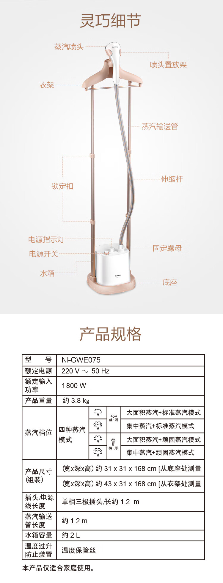 【特价样机】松下立式挂烫机NI-GWE075-W家用手持小型熨烫机烫衣服蒸汽增压熨斗 NI-GWE075-W