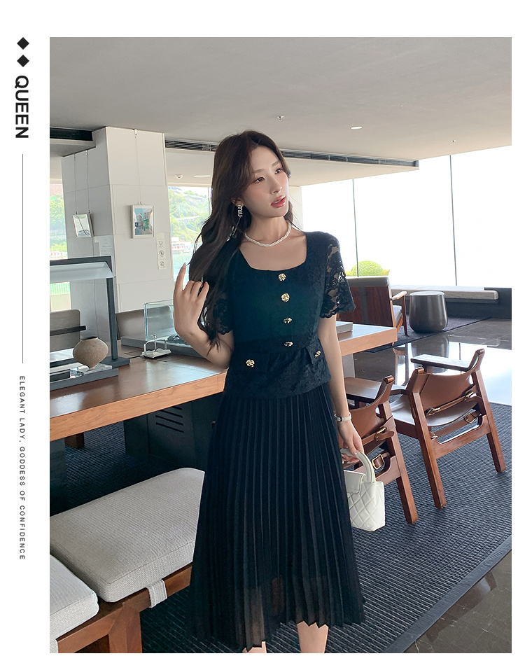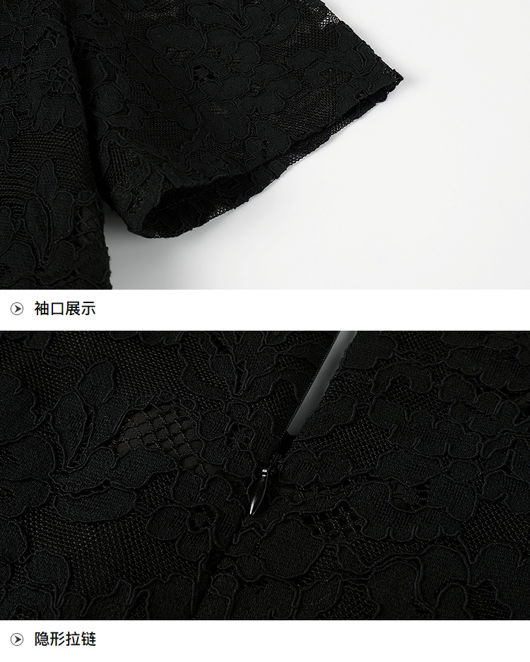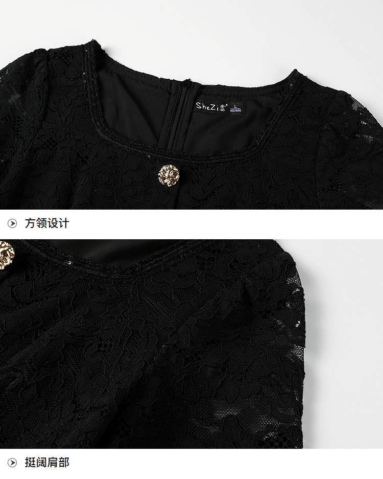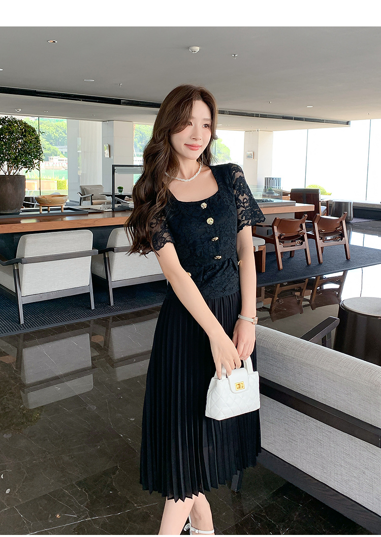 【清仓超15天不保价】奢姿大码女装2025夏季蕾丝拼接百褶气质连衣裙胖妹妹时尚方领裙子9952853128【1】