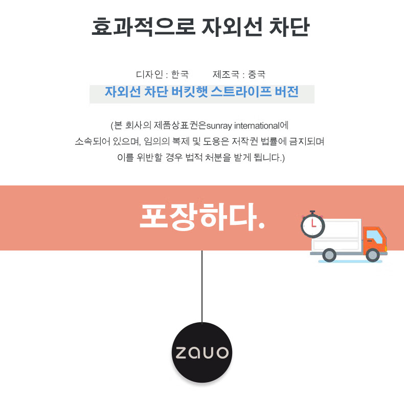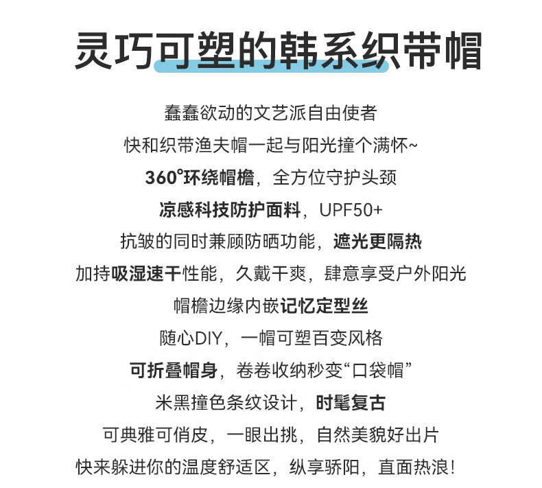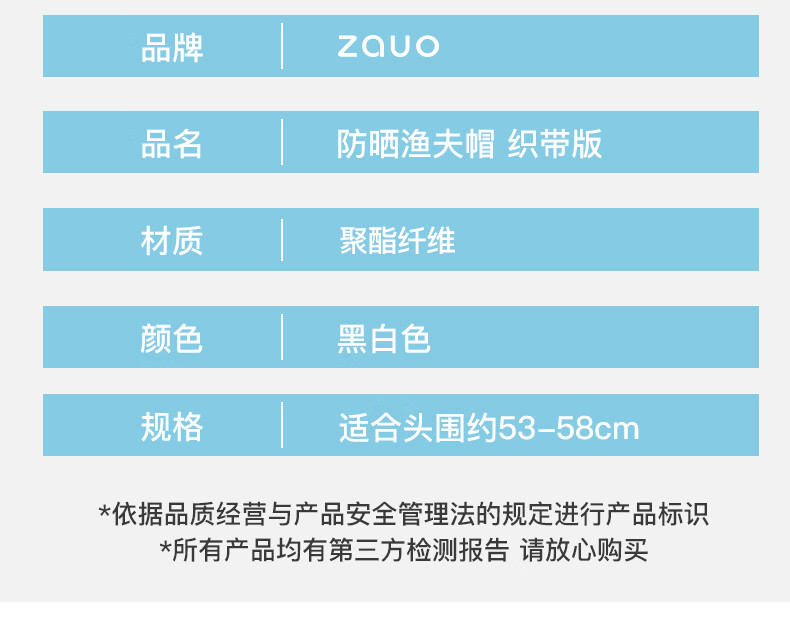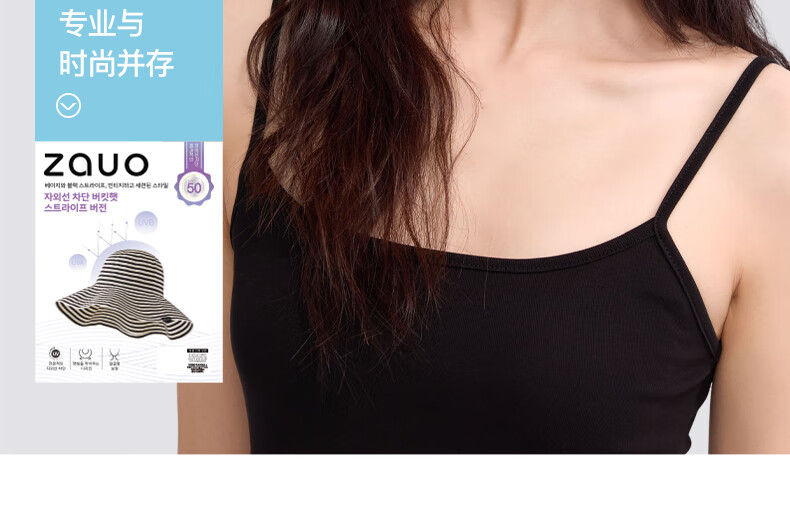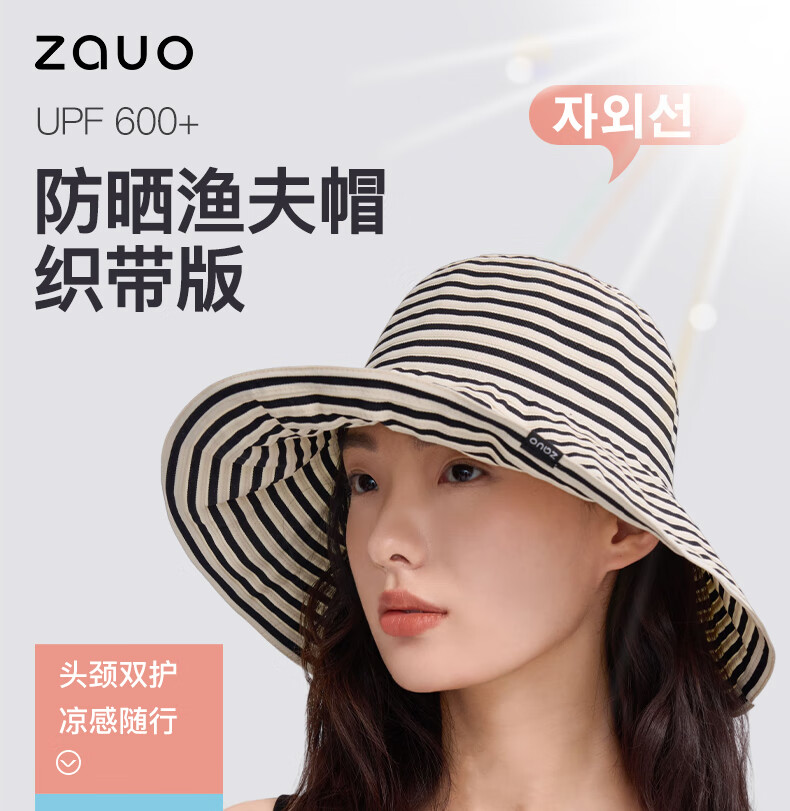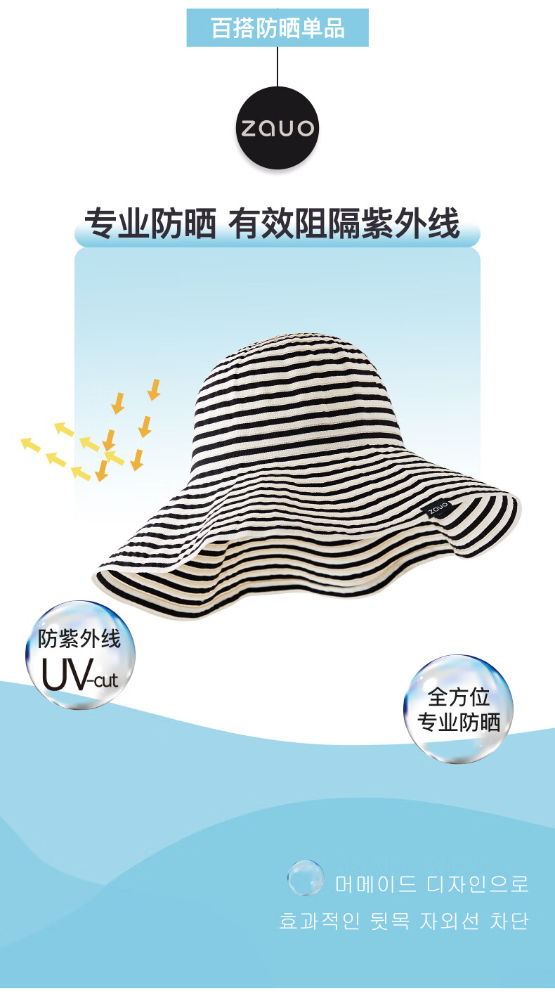 【分仓直发包邮】zauo防晒遮阳帽织带版黑条纹ZA.MZ.01.24.X2.00008