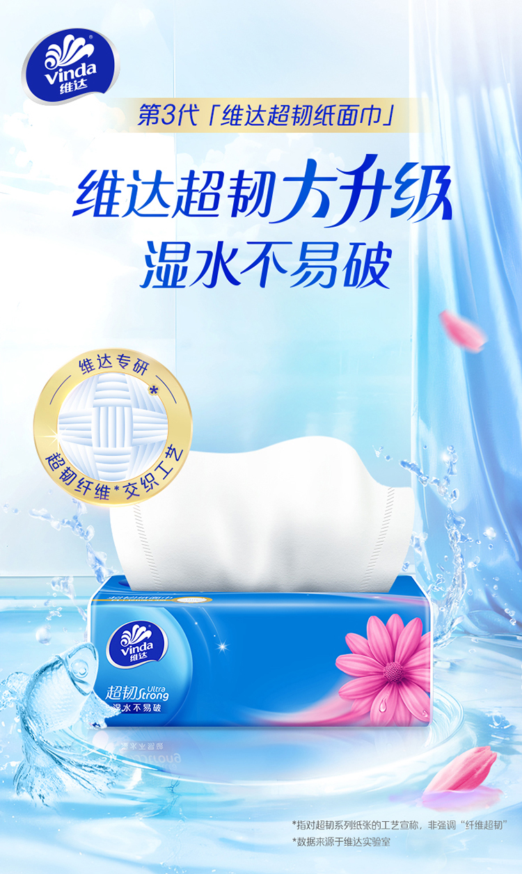维达 超韧抽取面巾3层M码120抽×8包 国标优等品 湿水不易破 48小时发货