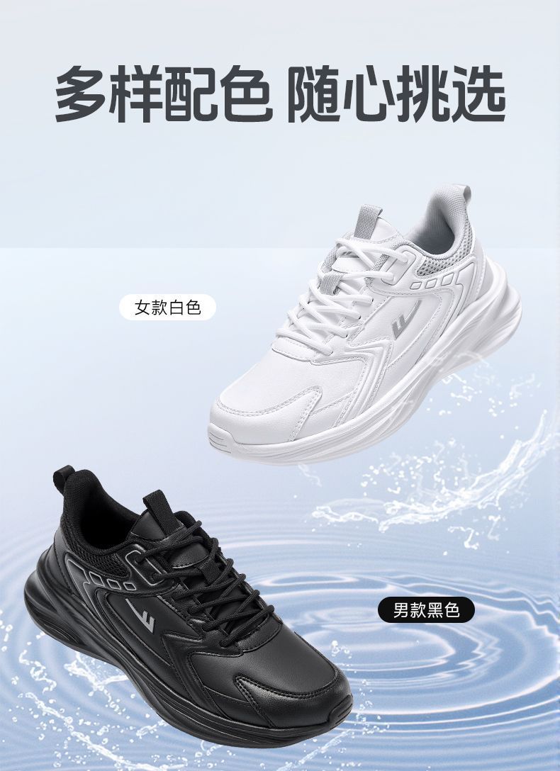 回力女鞋皮面防溅水运动鞋2025秋季软底休闲跑步鞋百搭情侣小白鞋
