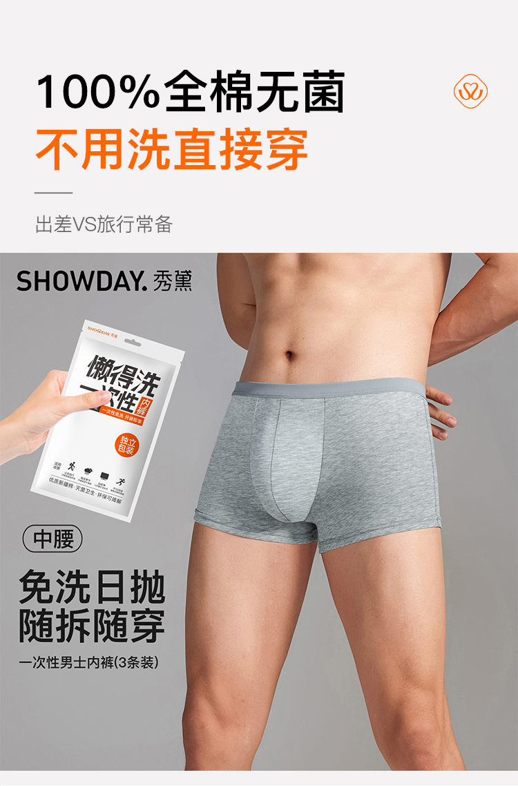 (男士3条装)【秀黛】一次性内裤男士一次性内裤S7330001T【门店同款】【内裤非质量问题不退换】