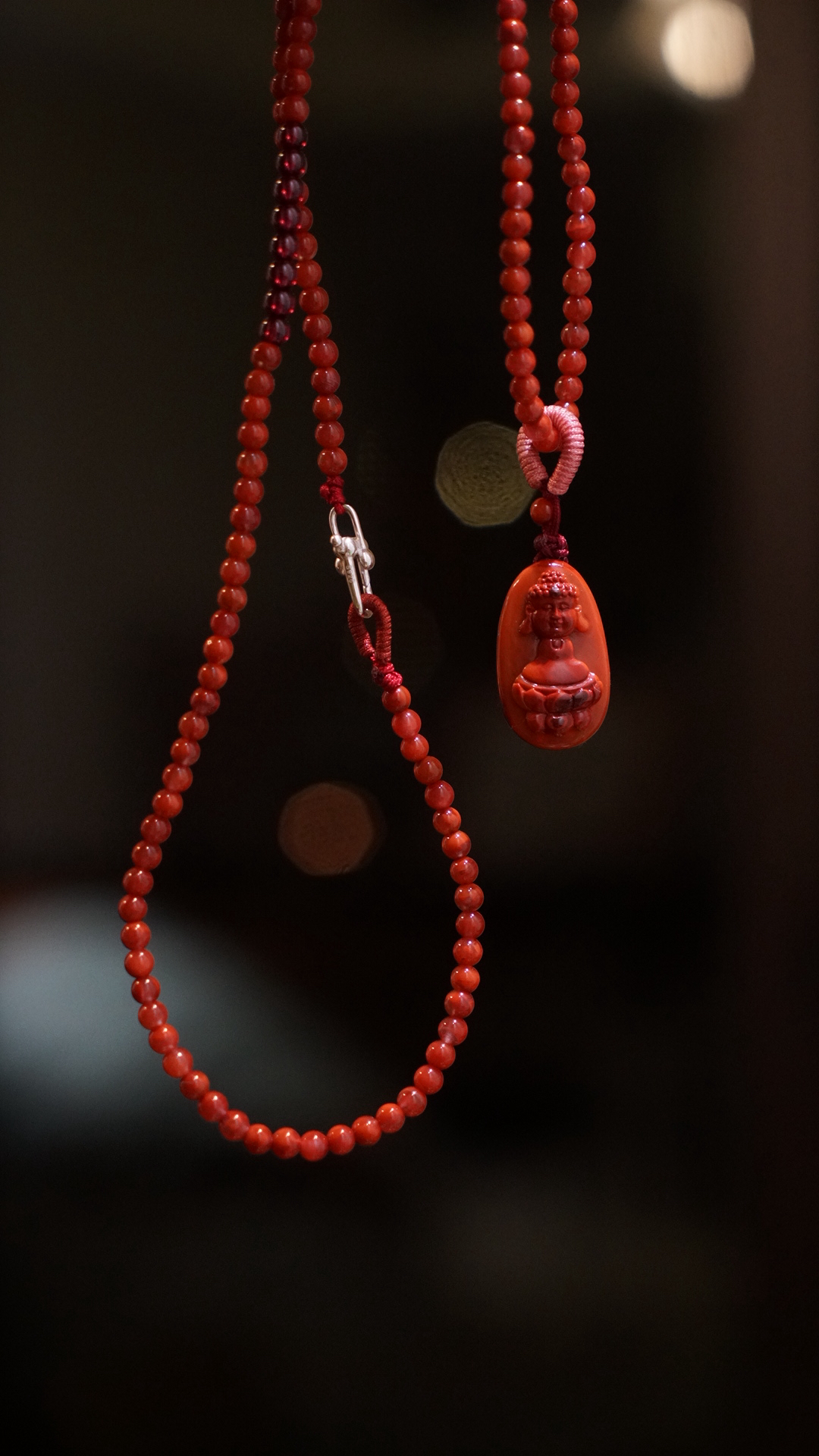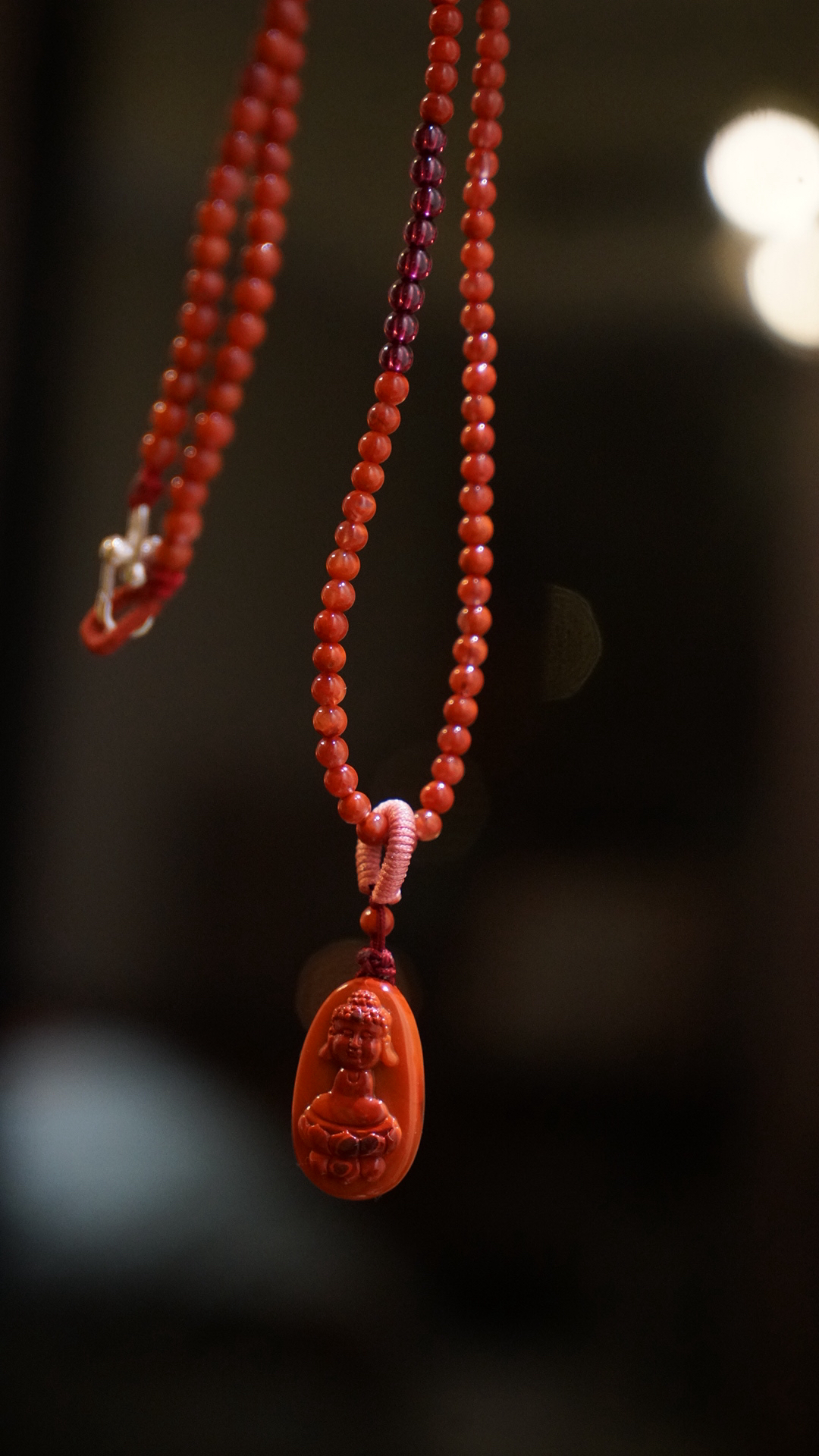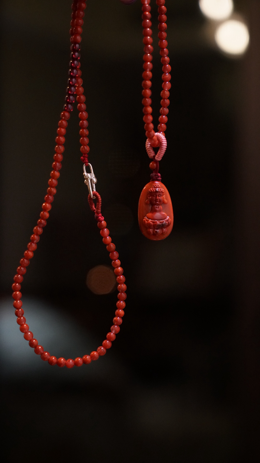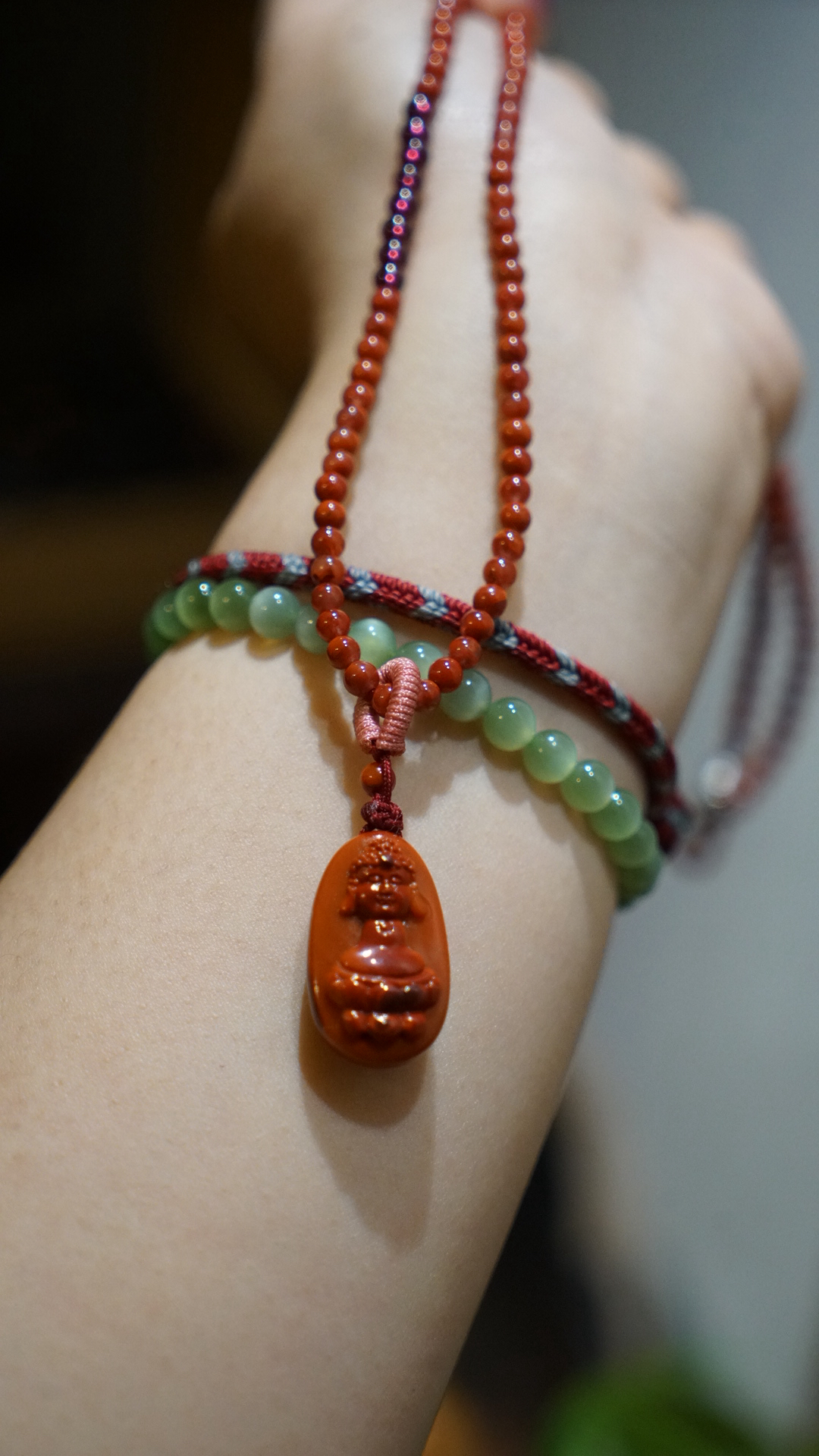 链子也是很棒的南红玛瑙,颜色细腻红润,整体特别舒服,百搭,扣子有弹簧可以很好取下。