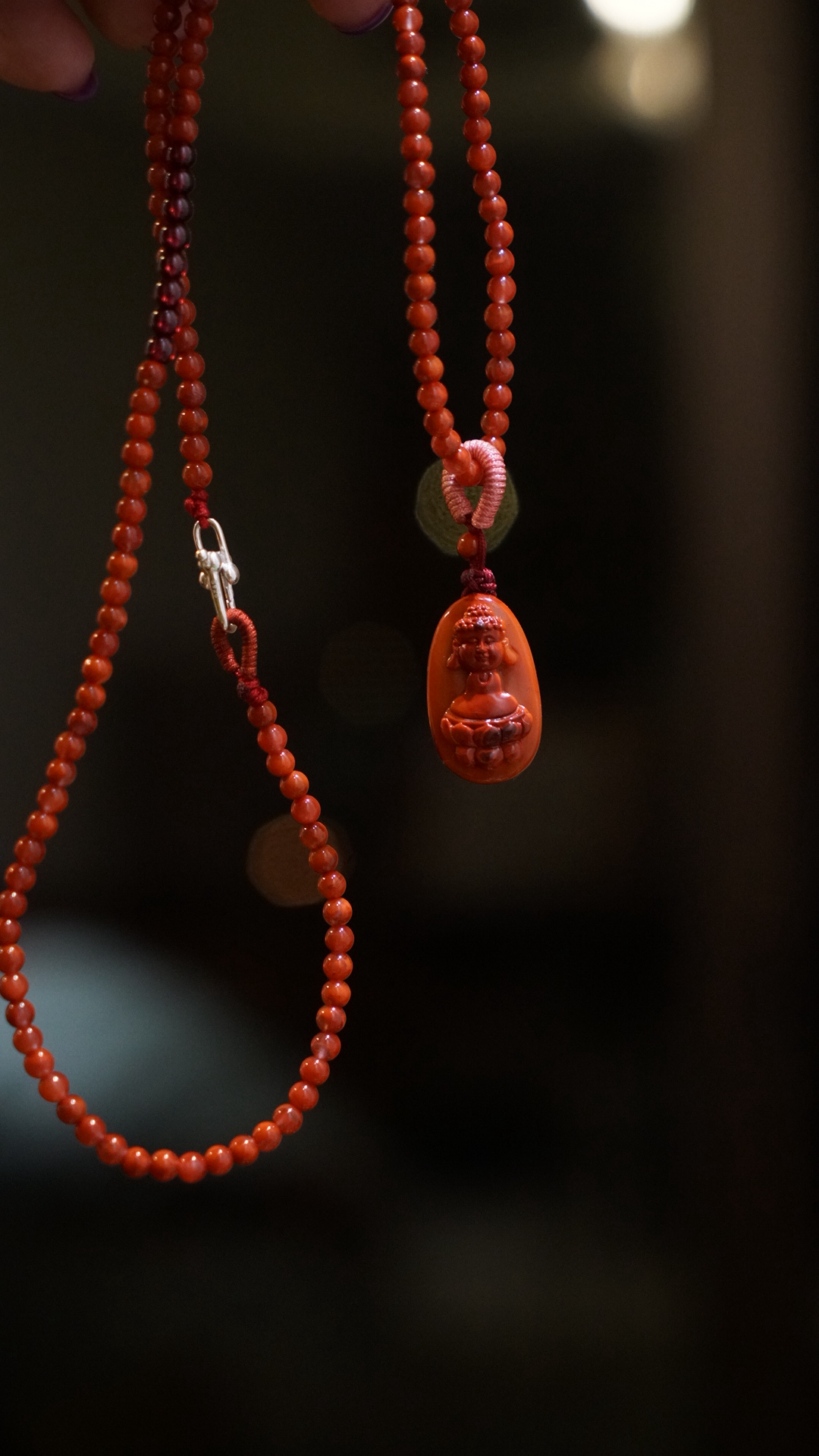 高品质南红玛瑙吊坠,精品雕刻铁皮包浆料,细腻油润,主题可爱的佛公,守护着您陪伴着您。