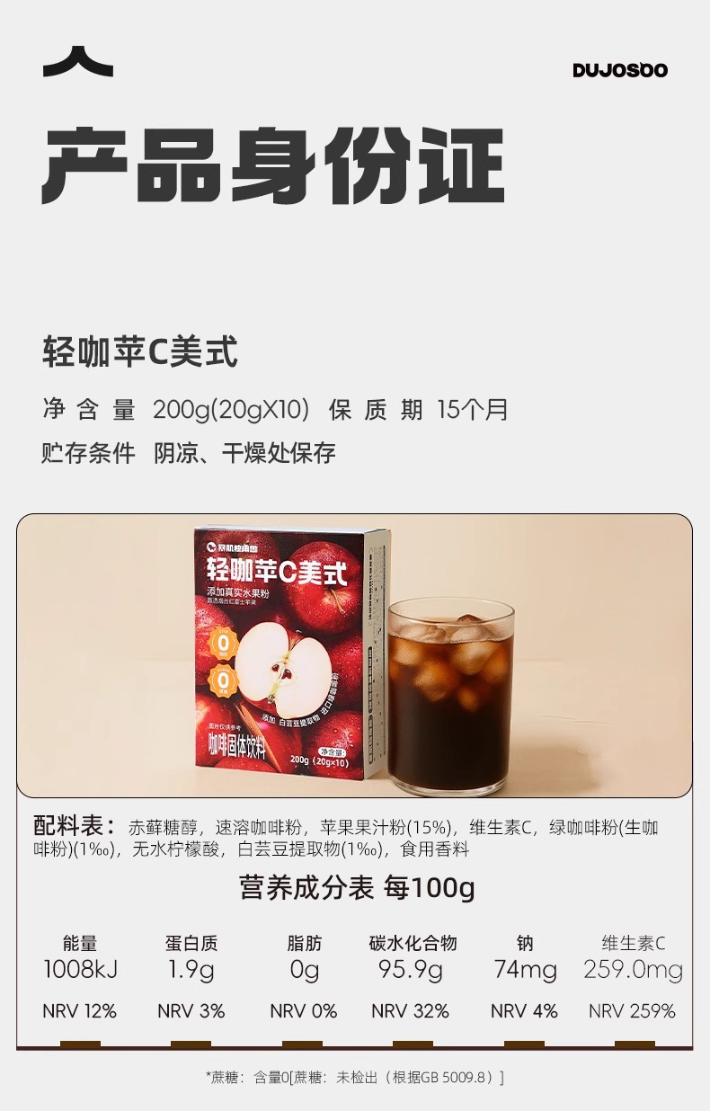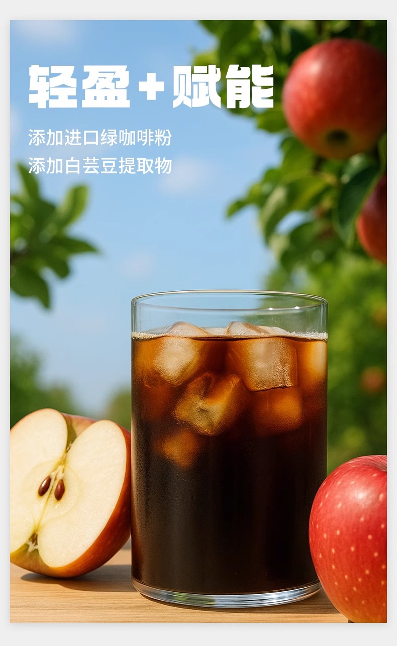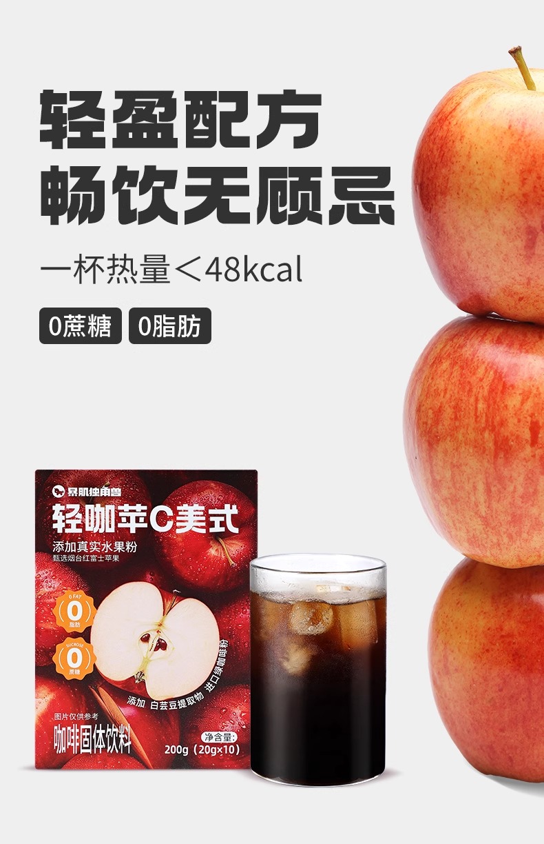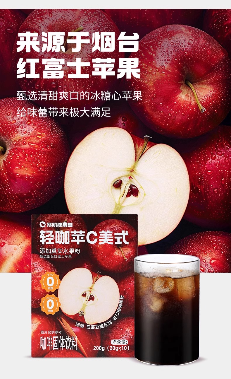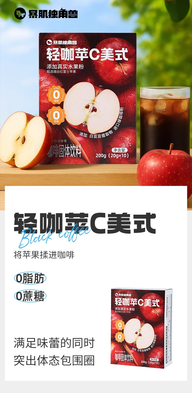【暴肌独角兽】黑咖啡粉苹果C美式绿咖速溶无蔗糖0脂袋装白芸豆果咖啡