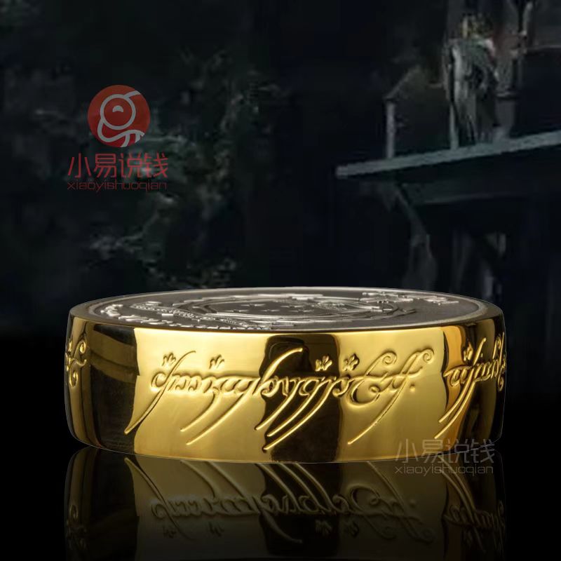 币的外环是3D立体环形的,高度达13mm,且镀金,金灿灿的,俨然再现了剧中的魔戒造型,很是亮眼。