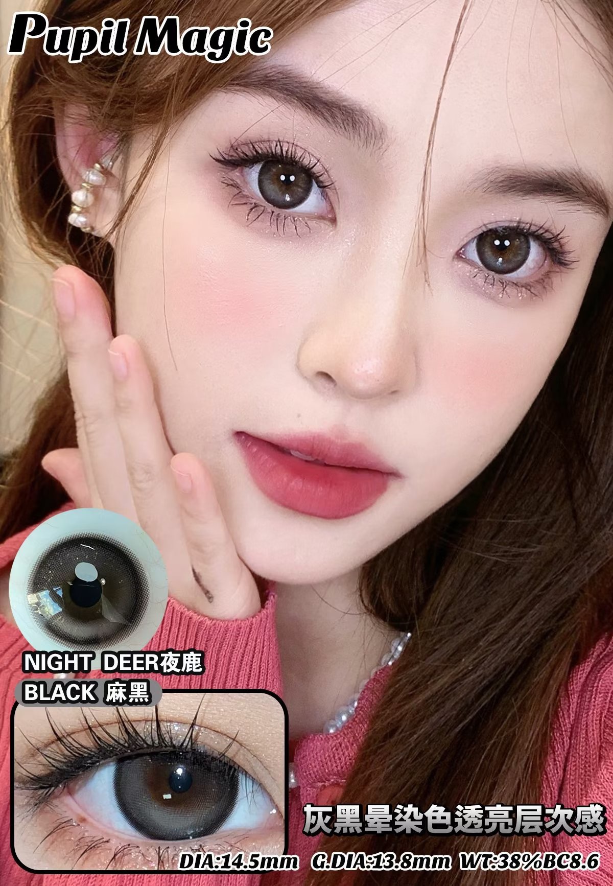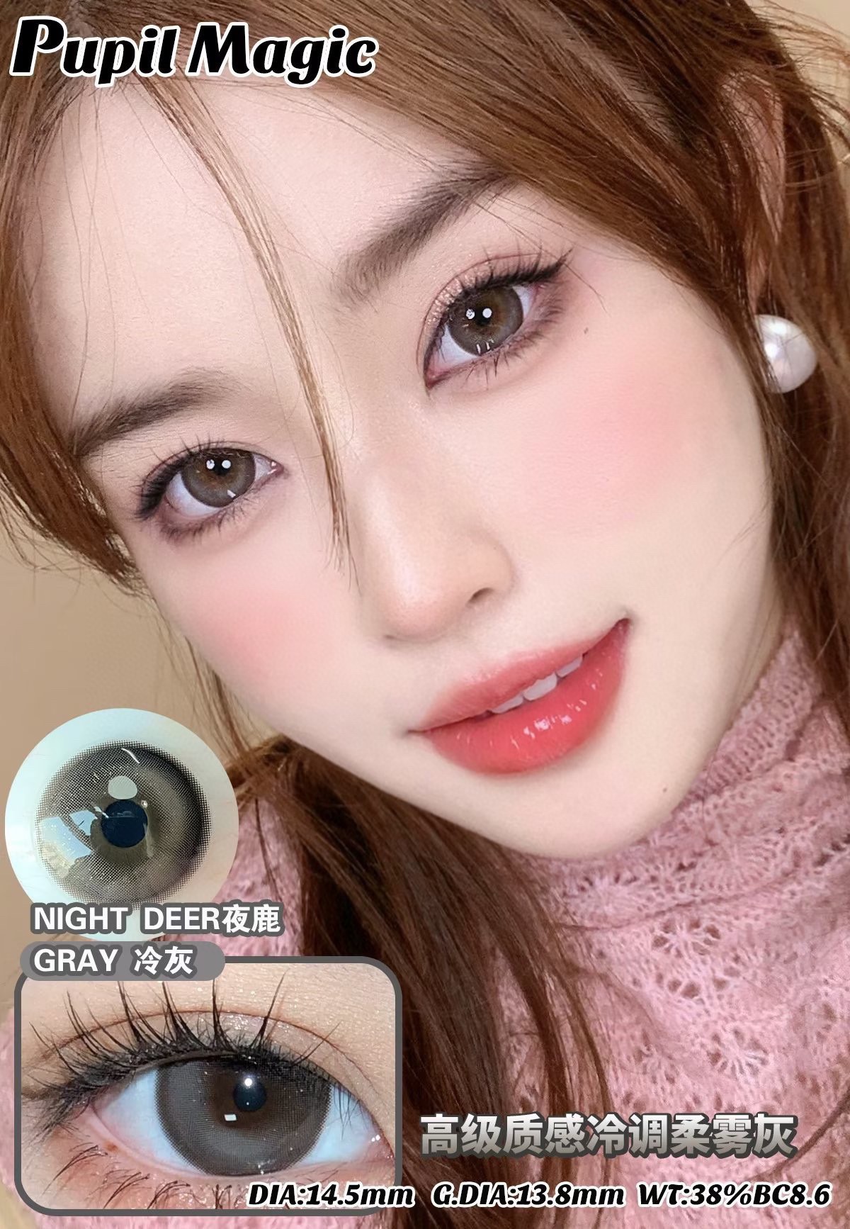 Pupil Magic 夜鹿冷灰/夜鹿雾粉/夜鹿麻黑 14.5mm 年抛