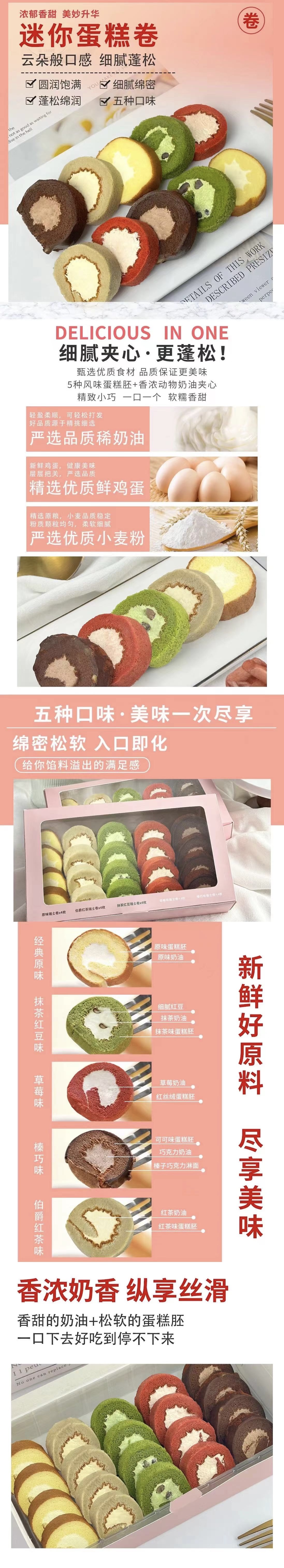 【迷你蛋糕卷分享装】(10月13号16点取-------14点下单的隔天取)五味口味:经典原味、抹茶红豆味、草莓味、榛巧味、伯爵红茶味 不退不换、介意者慎拍